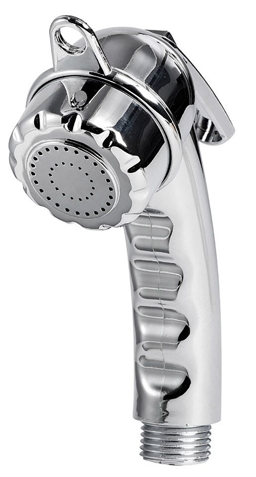 Лейка душа с клапаном (10265035). Душевая лейка из хромированного пластика. Наличие клапана непосредственно на лейке душа позволяет очень экономно расходовать воду (выполнен в виде клавиши-рычажка). Патрубок с резьбой 1/2 дюйма.