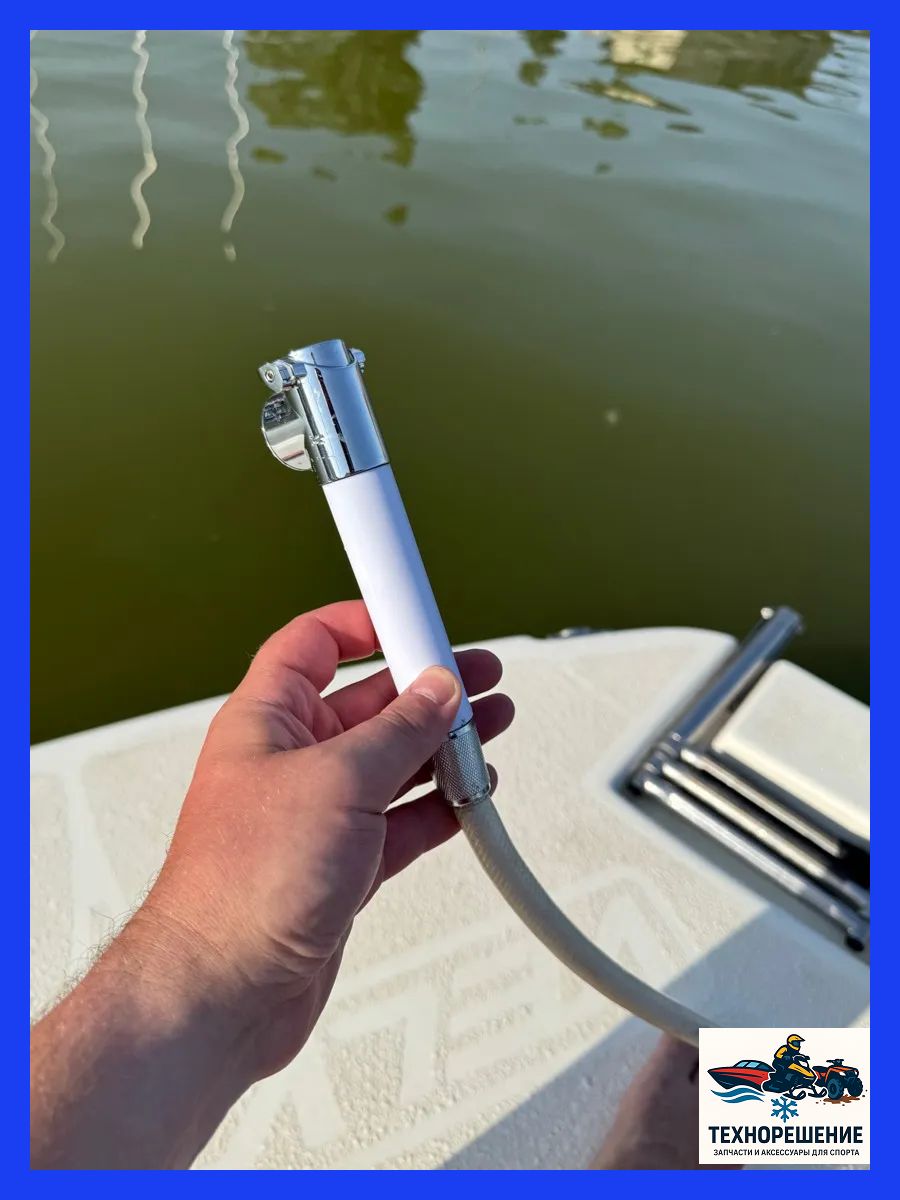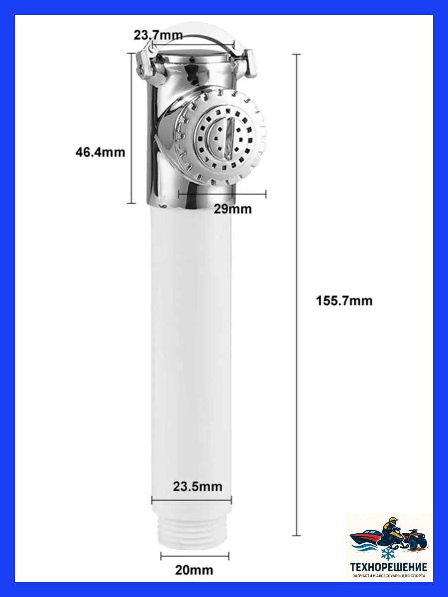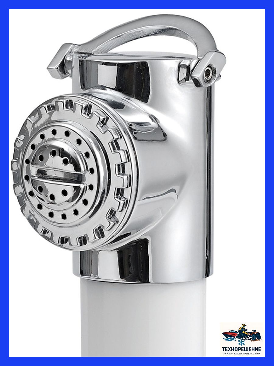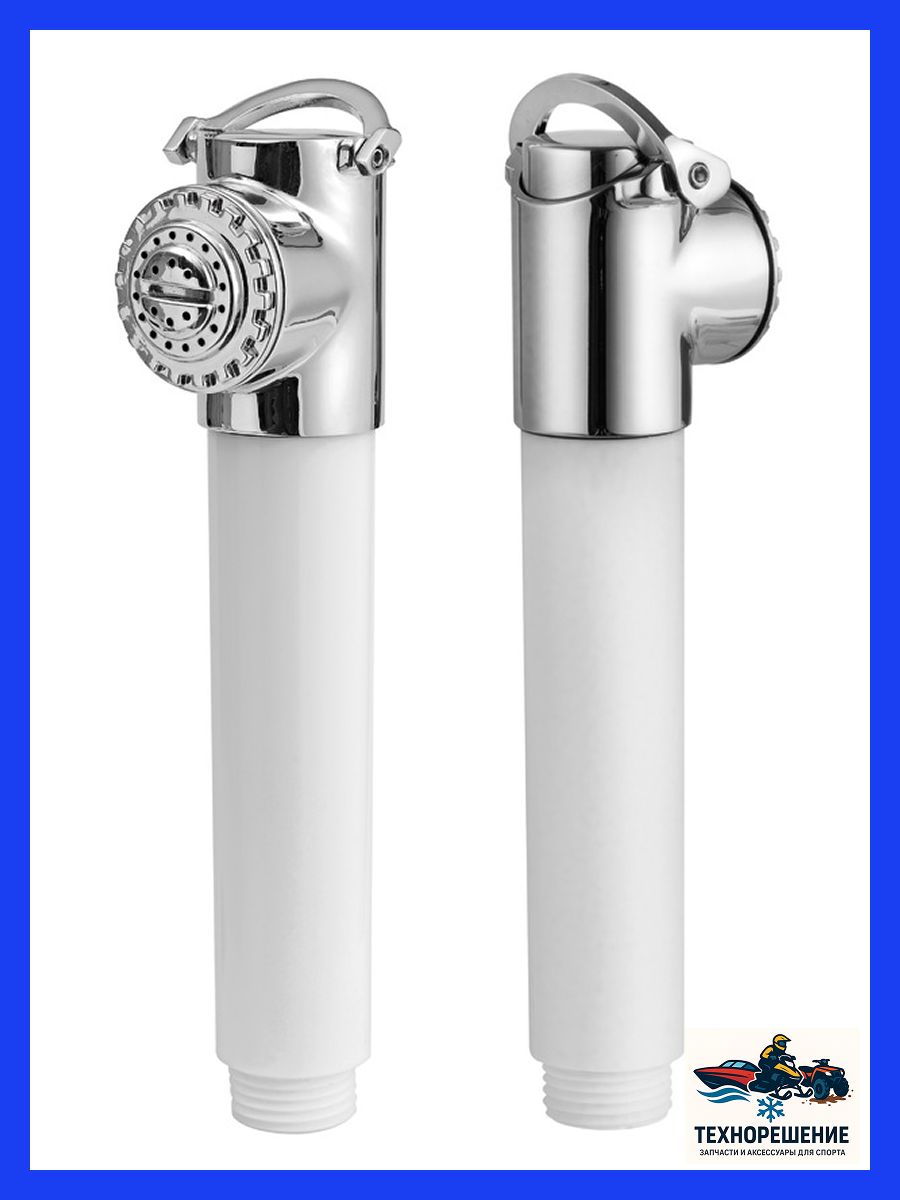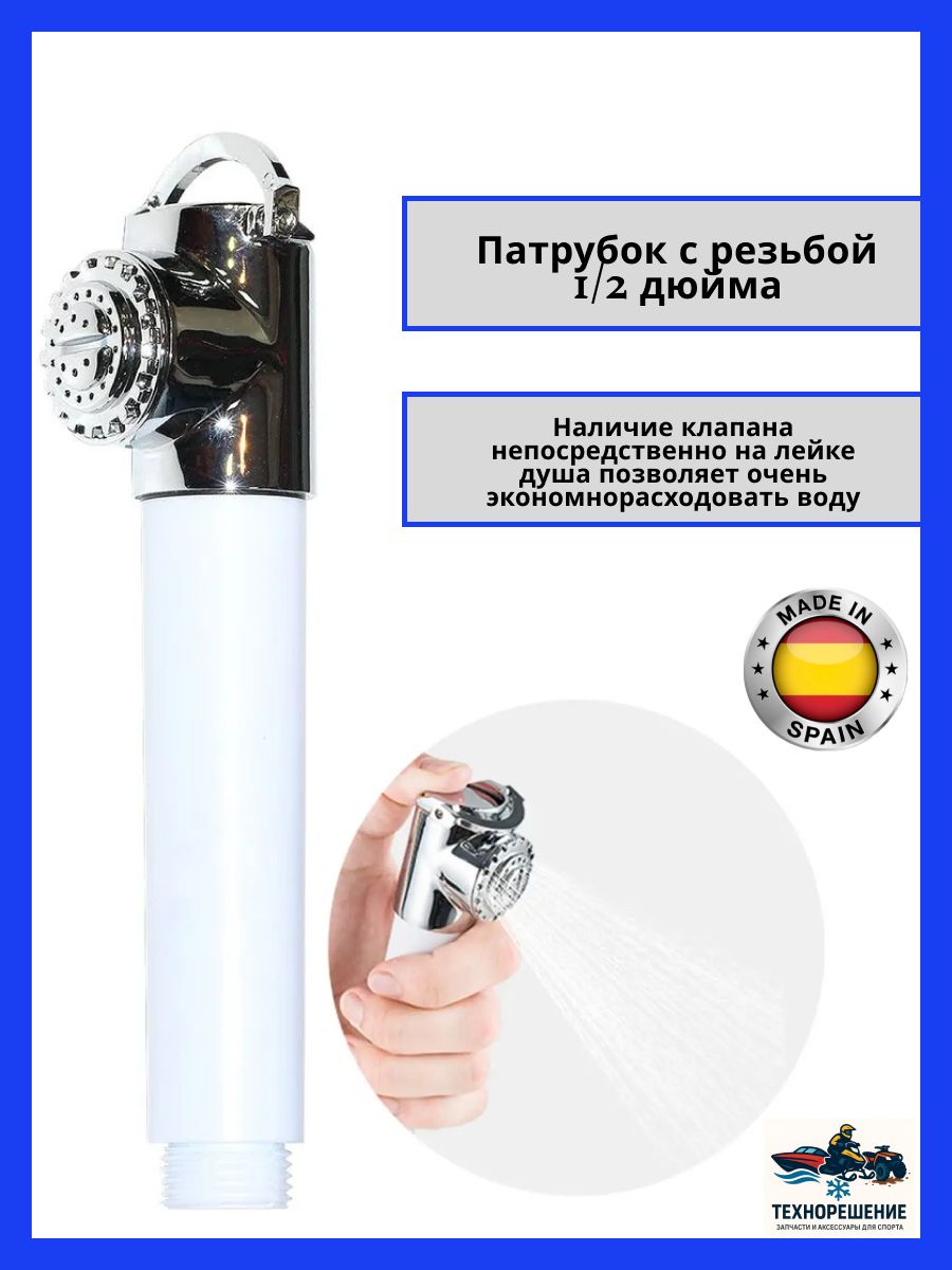 Лейка душа с клапаном (10258883). Пластиковая лейка с хромированным бронзовым распылителем. Наличие клапана непосредственно на лейке душа позволяет очень экономно расходовать воду (выполнен в виде кнопки на торце лейки). Патрубок с резьбой 1/2 дюйма. Цвет: белый. Производитель: "Osculati", Италия.