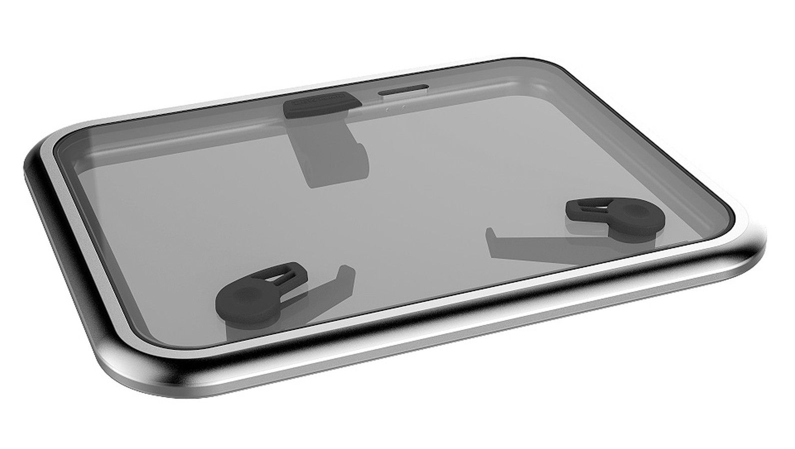 Люк палубный, средний профиль, размер 70 (10243180). Рама из анодированного алюминиевого сплава (углы с наружным радиусом 78 мм) и дымчатое акриловое стекло. Поставляются с фрикционным держателем крышки. Могут комплектоваться внутренней декоративной рамкой с противомоскитной сеткой, либо рамкой с противомоскитной сеткой и светонепроницаемым экраном (приобретаются отдельно). Крепятся винтами диаметром 5 мм с потайной головкой (приобретаются отдельно).Размер люка