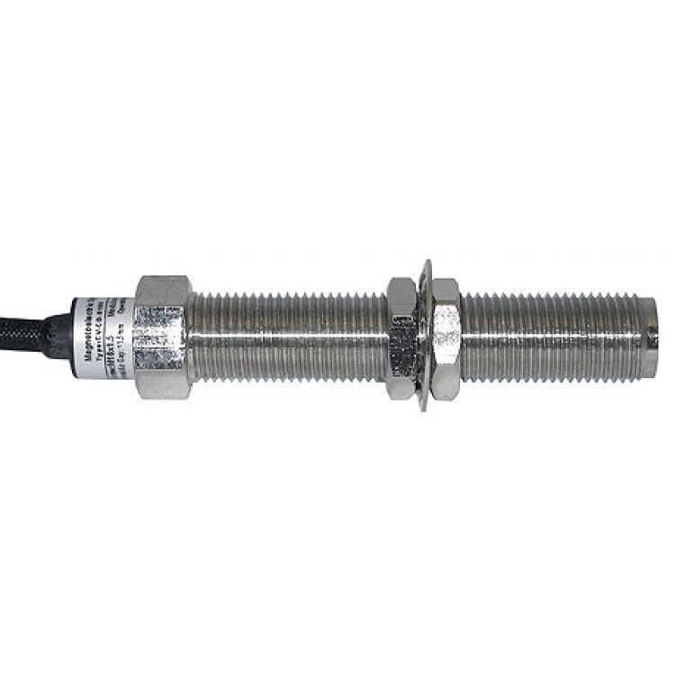 Магнитно-электрический датчик тахометра, "Мореман" трехпроводной, 68x40 мм (общая длина x длина резьбовой части), резьба M18x1,5 мм (10252274). Магнито-электрические датчики для тахометров. Снимают показания с зубчатого венца маховика двигателя. Трехпроводной датчик (с подачей питания) обеспечивает более точные показания, в особенности на низких скоростях вращения. Крепление — резьба.