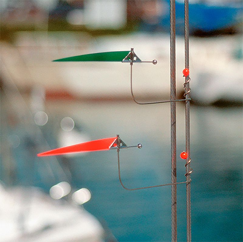 Мини флюгарки (10262558). Пара миниатюрных флюгарок. Легко крепятся на ванты правого и левого борта. Очень чувствительные - полезны даже при слабом ветре. В комплекте две флюгарки красного и зеленого цвета.