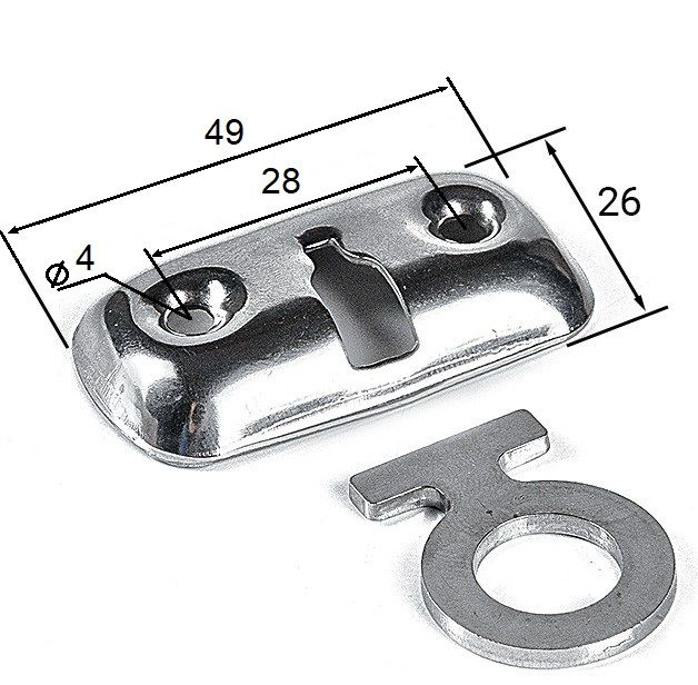 Монтажное гнездо и крюк для крепления кранца (10261743). Монтажное гнездо и крюк для крепления кранца. Изготовлены из нержавеющей стали.