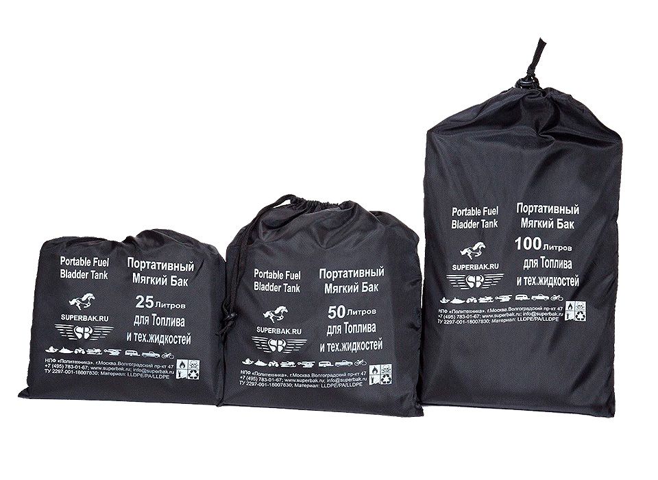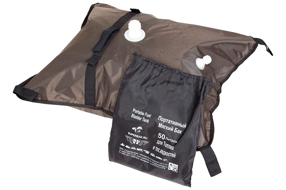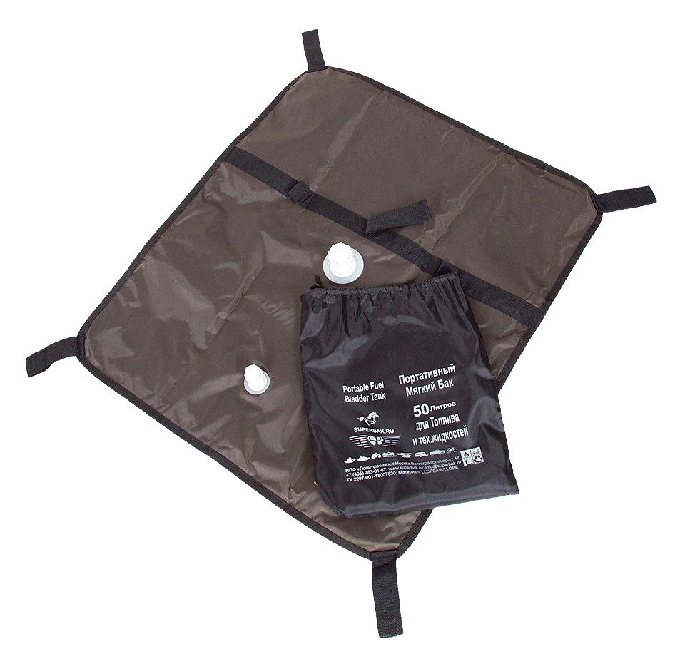 Мягкие (эластичные) баки для хранения и перевозки топлива. Также могут использоваться в качестве емкостей для питьевой воды (только новые баки без следов топлива!). Состоят из внутренней герметичной полимерной емкости и внешней силовой тканевой оболочки. Имеют стропы для крепления, петли для переноски, заливные горловины с резьбовыми крышками и расходные патрубки с шаровыми кранами. Могут использоваться при температуре от –50°С до +50°С (для хранения и перевозки топлива) или от +4°С до +50°С (для хранения и перевозки воды). Могут быть установлены на палубах, в трюмах, под банками, пайолами, между шпангоутами, в полости борта и в других обычно неиспользуемых для хранения жидкостей объемах маломерных речных и морских судов, а также в качестве стационарного/передвижного топливного резервуара.Емкость*: 25, 50, 100 лРазмеры*: 25л - 70х55х20 см, 50л - 80х70х30 см, 100л - 95х75х30 см Диаметр заливного патрубка: 24 мм Диаметр расходного патрубка: 15 мм Страна-производитель: Россия *- при наполнении на ровной плоской поверхности.