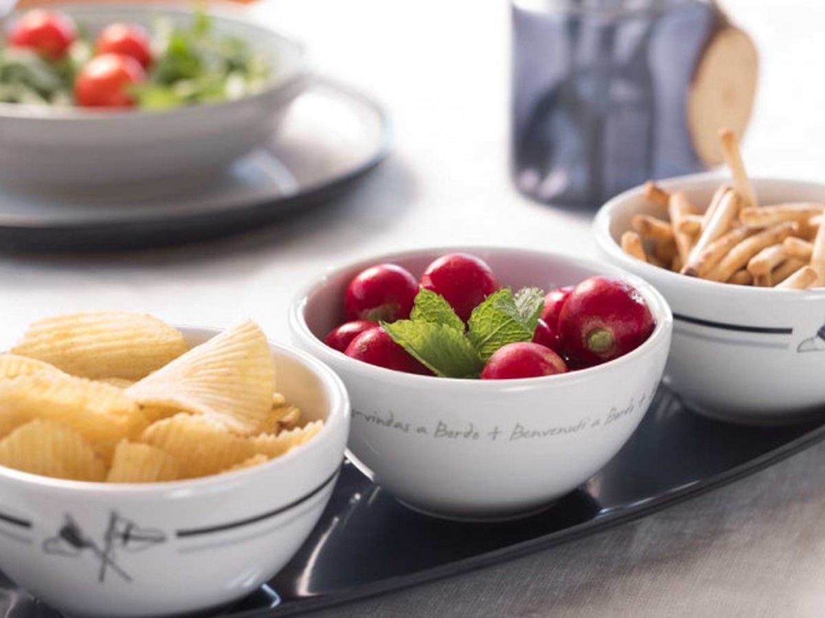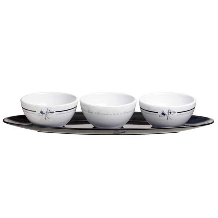 Набор для закусок "Welcome on board", 4 шт (10262856). Поднос и три миски из меламина — стойкого к ударам и царапинам керамоподобного пластика. 4 предмета в наборе. Цена за набор.Вес: 0,8 кг.Размер: 43 см х 13 см