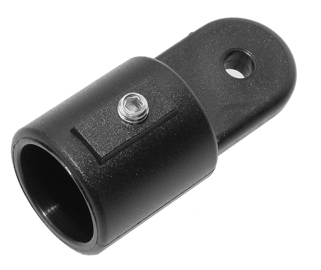Наконечник с рымом, черный пластик, надевается на трубу с наружным диаметром 22 мм (10261838). Кронштейн для сопряжения элементов каркаса тента и иных трубчатых конструкций. Два варианта монтажа: наружный (надевается на трубу) и внутренний (вставляется в трубу). Под трубу диаметром 3/4 (19мм) или 7/8 (22мм) дюйма.