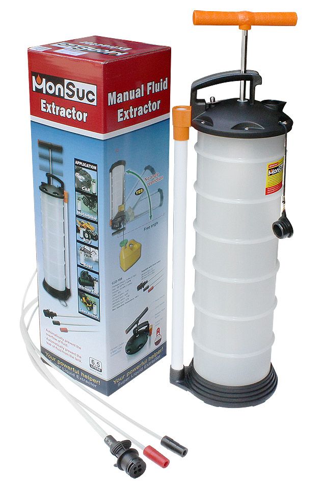 Насос для откачки масла, 6,5 л. (10262729). Ручной самовсасывающий насос для откачки масла. Позволяет откачать масло через отверстие масляного щупа в ситуациях, когда доступ к сливной пробке картера двигателя затруднен. Три шланга разного диаметра в комплекте.