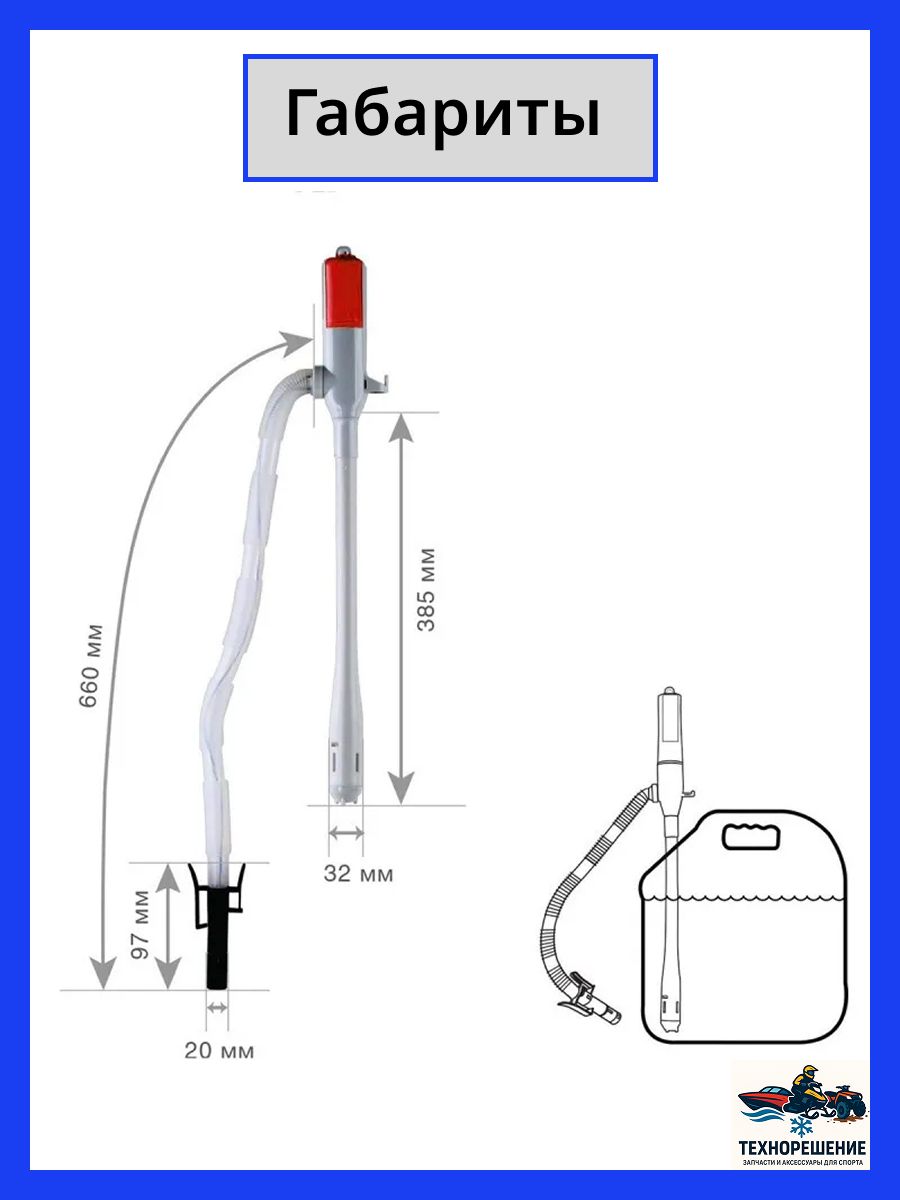 - Используется как насос для перекачки бензина на батарейках и удобный насос для канистры при заправке бензоинструмента или специальной техники.