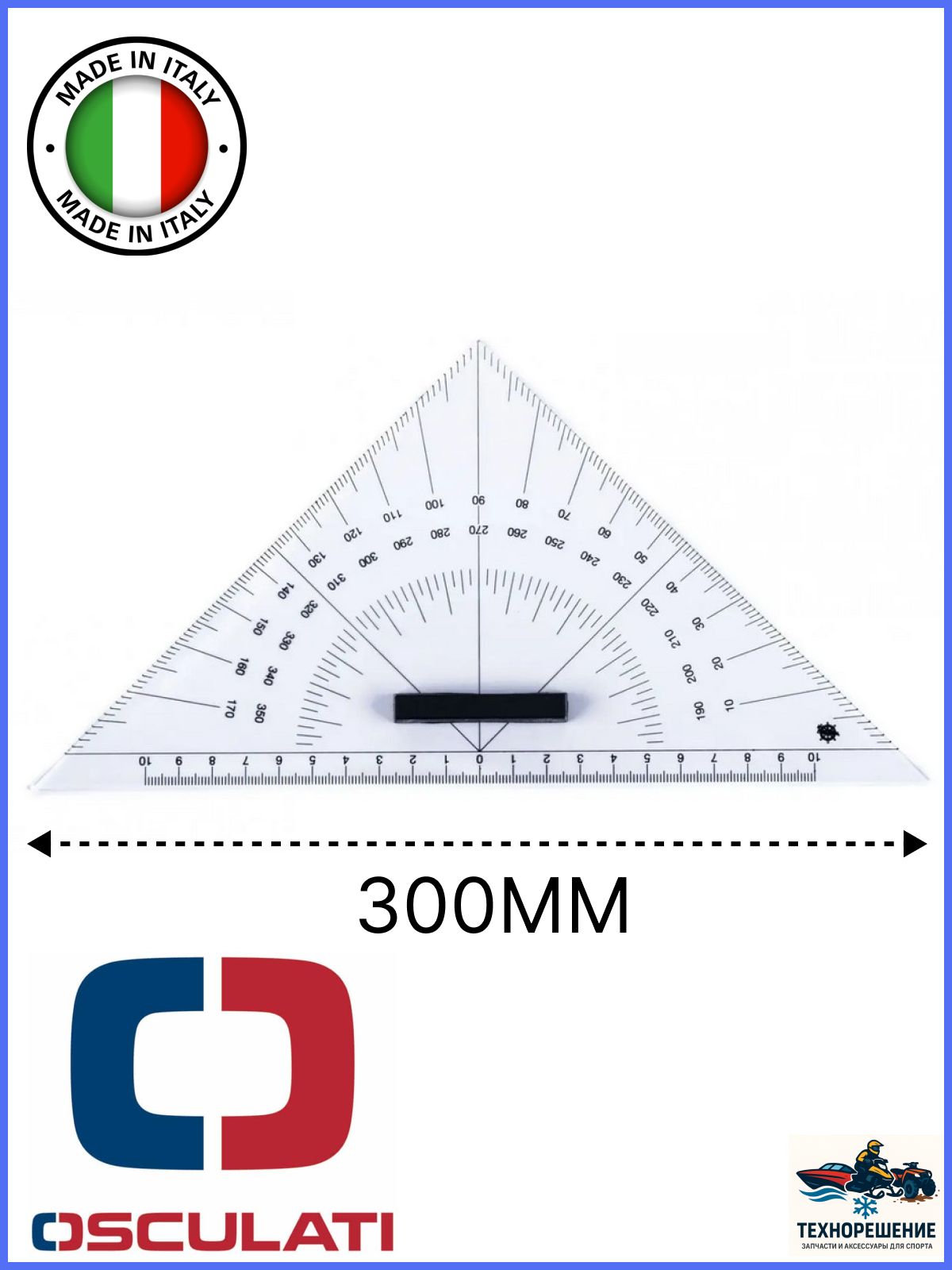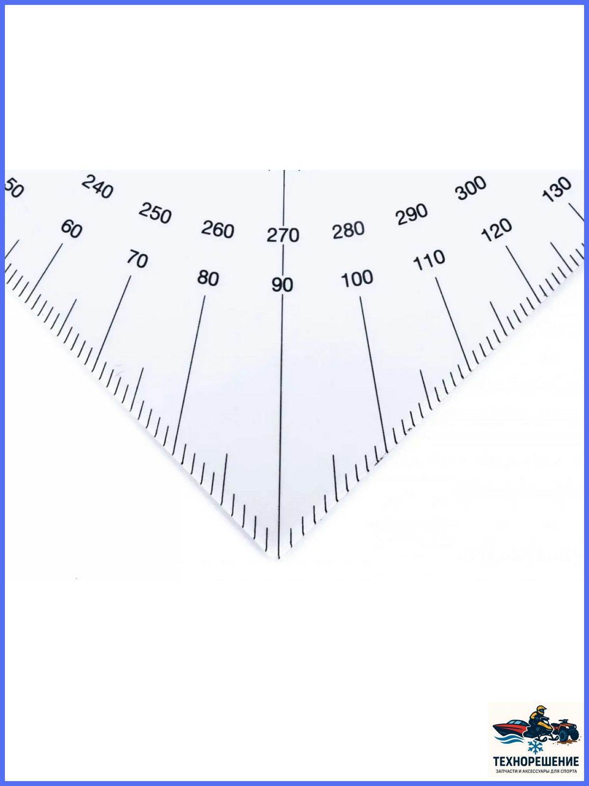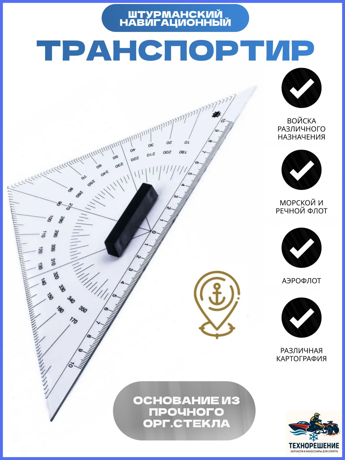 Угольник-транспортир штурманский с линейкой из прозрачного плексигласа. Инструмент используется для точного измерения и построения углов, а также для проведения прямых линий и параллельных направлений на картах. Подходит для морской и речной навигации, авиации, военных задач и картографии.