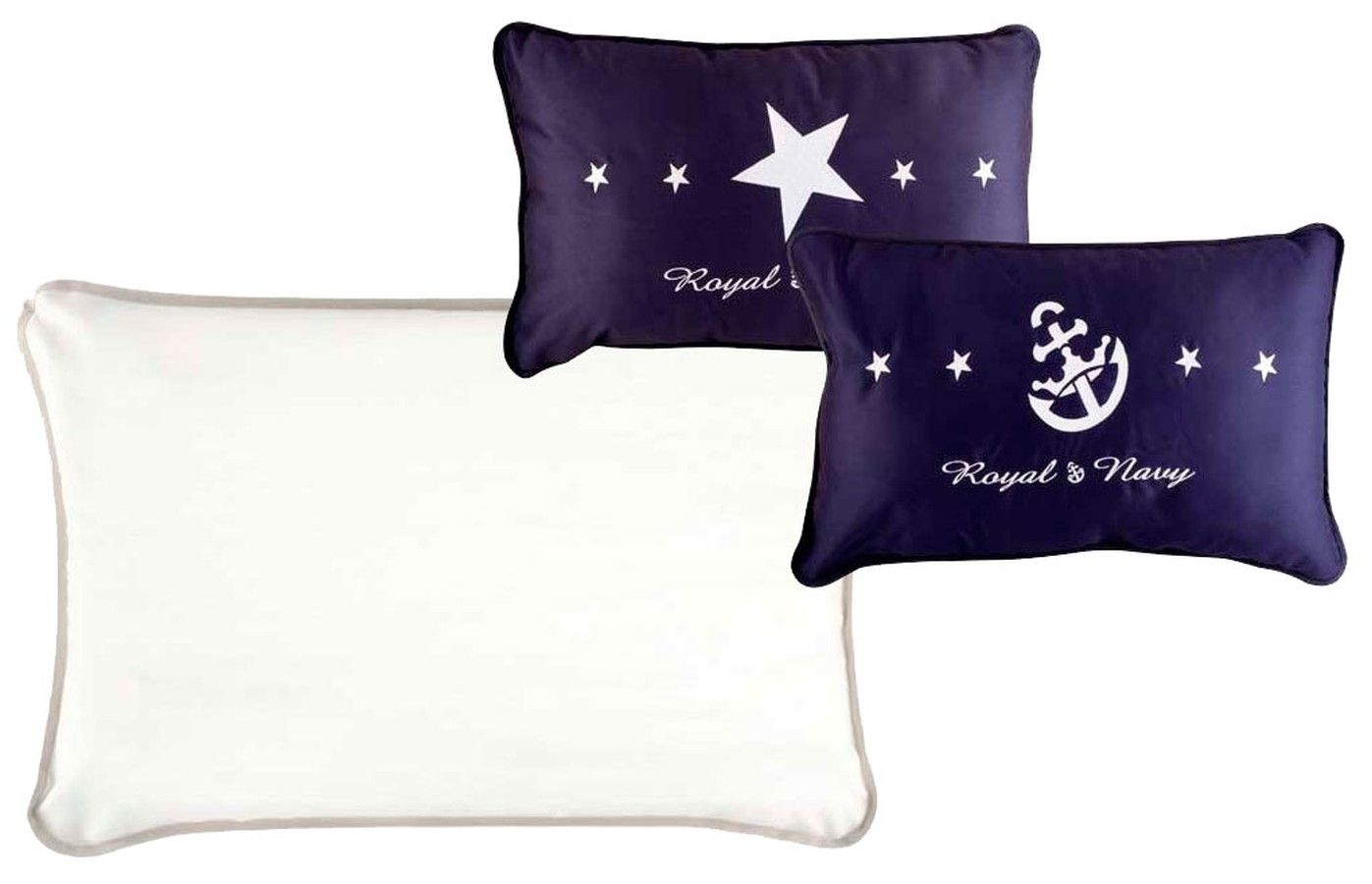 Наволочки "Royal", 40х60 см, пара (10260139). Две наволочки, выполненные в едином стиле. Насыщенный синий цвет и белая вышивка (звезда и якорь). Наволочки и подушки продаются отдельно! Цены указаны за пару подушек и пару наволочек.