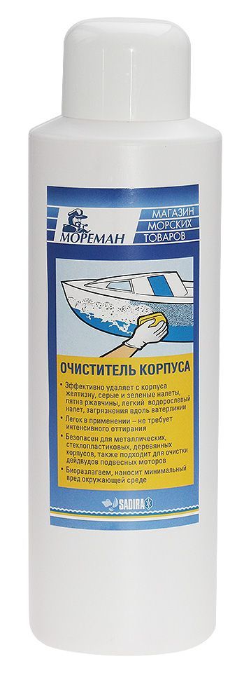 Очиститель корпуса, 1000 мл (10258212). Эффективно удаляет с корпуса желтизну, серые и зеленые налеты, пятна ржавчины, легкий водорослевый налет, загрязнения вдоль ватерлинии. Легок в применении - не требует интенсивного оттирания. Безопасен для металлических, стеклопластиковых, деревянных корпусов (окрашенных), также подходит для очистки дейдвудов подвесных моторов и угловых колонок (с ненарушенным лакокрасочным покрытием). Внимание! Данный очиститель не рекомендован для алюминиевых лодок, а также дейдвудов подвесных моторов и угловых колонок с нарушенным лакокрасочным покрытием, для их очистки следует применять специльный очиститель для алюминия (№ 10258230).