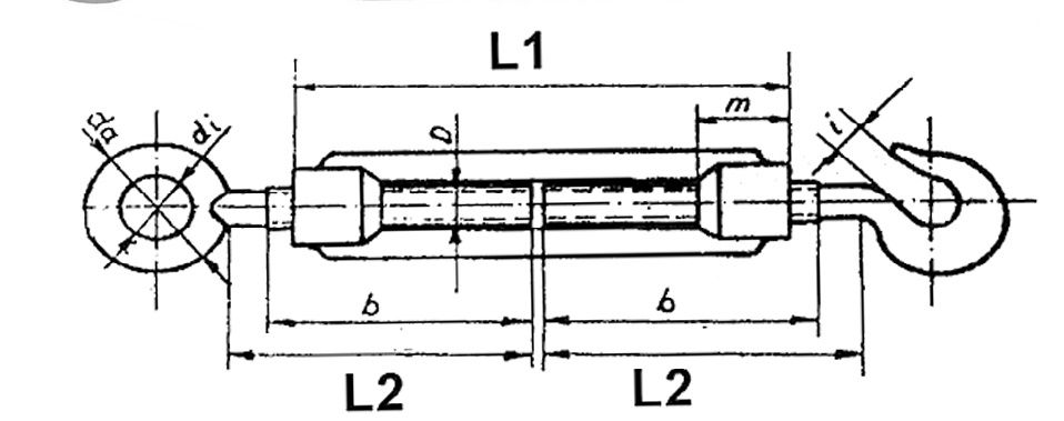 Открытый талреп рым/рым. Материал: нержавеющая сталь.