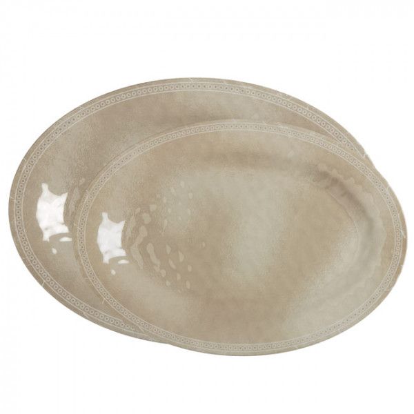 Две овальные сервировочные тарелки. Изготовлены из меламина — стойкого к ударам и царапинам керамоподобного пластика. 2 штук в наборе, цена за набор.Вес: 0,8 кг.Размеры: 41см x 29см и 35см x 26 см Производитель: "Marine Business", Испания.