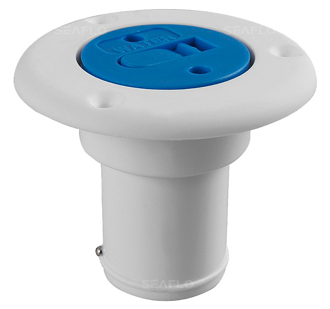 Пластиковая палубная горловина. Утапливаемый в крышку ключ для отворачивания. Цепочка для удержания крышки.