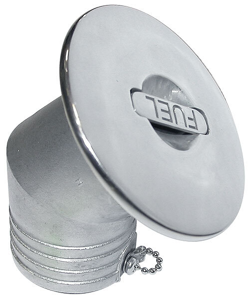 Палубная горловина из нержавеющей стали (AISI 316) с надписью "Fuel" (топливо) на фланце и наклонным патрубком. Утопленный в полость крышки ключ для отворачивания. Верхняя часть горловины отполирована. Диаметр патрубка под шланг: 38, 50 мм. Страна-производитель: Китай.