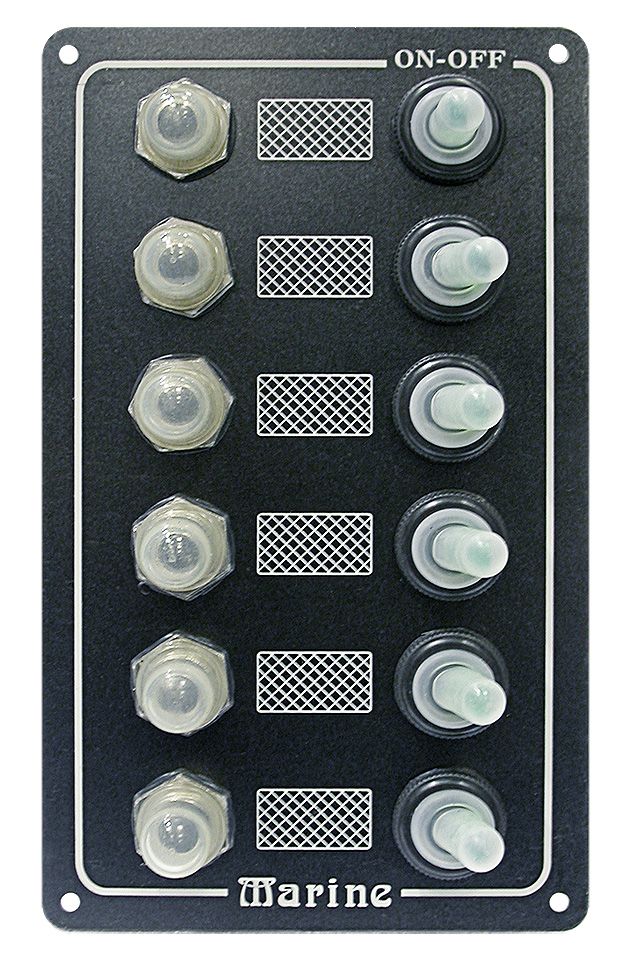 Панель выключателей, 6 тумблеров (10247865). Новинка! Черное алюминиевое основание. 6 тумблеров с подсветкой и 6 автоматических предохранителя, защищенных силиконовыми колпачками.