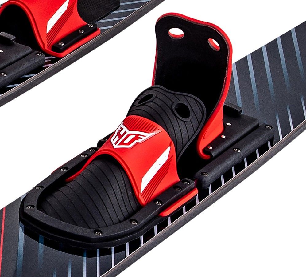Одна из лыж в паре имеет дополнительное крепление - так называемую заднюю петлю. Используя ее, можно использовать одну из лыж как монолыжу и опробовать свои силы в воднолыжном слаломе, получив еще больше эмоций от активного катания и маневрирования.