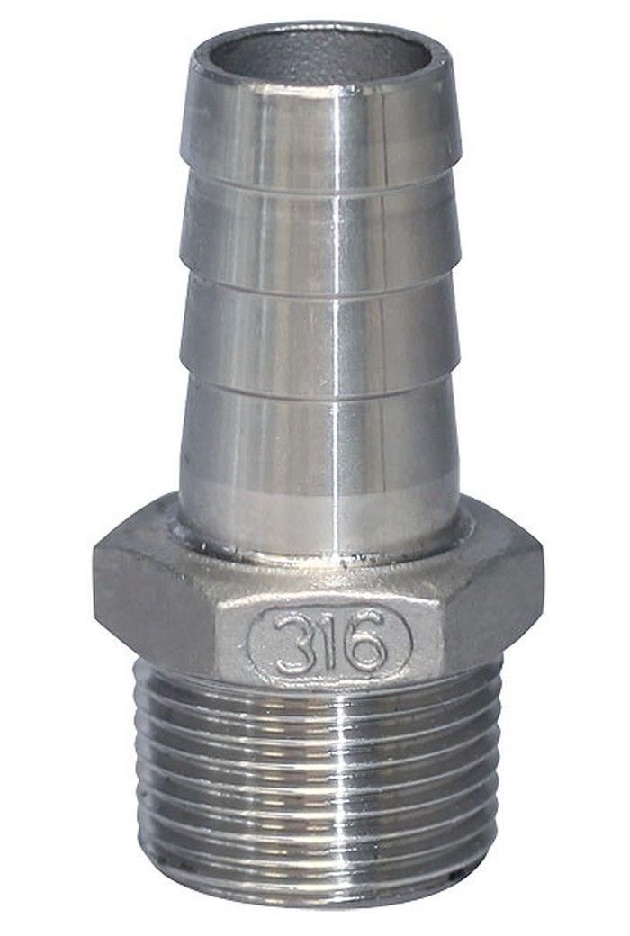 Патрубок под шланг с внутренним диаметром 20 мм "Мореман", наружная резьба 1/2 дюйма (10254825). Патрубок из нержавеющей стали. Используется в водопроводных, канализационных, трюмных осушительных и топливных системах.