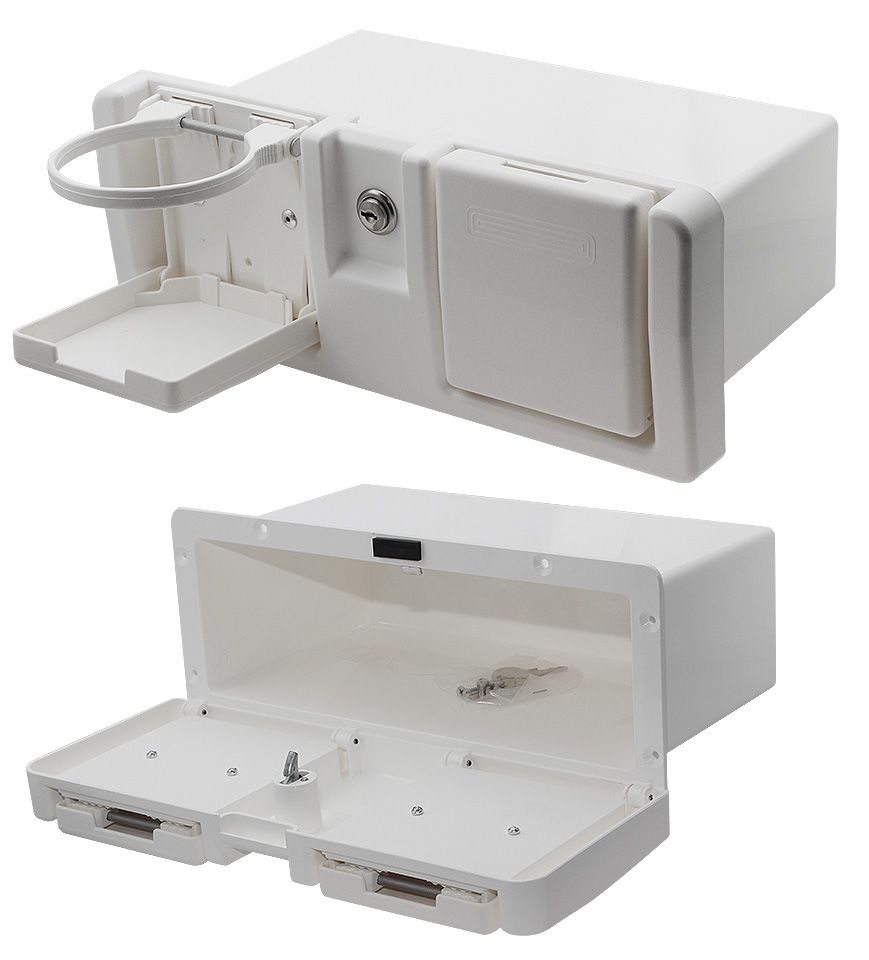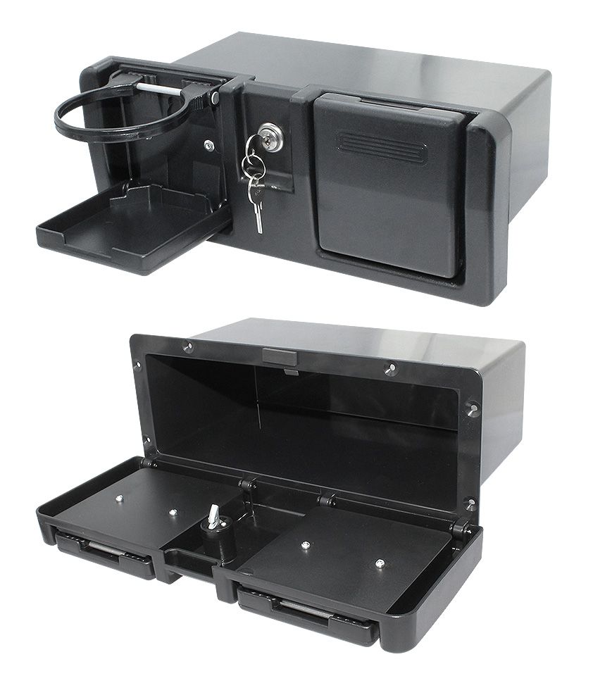 Бокс для мелочей, черный пластик (10261814). Пластиковый бокс для мелочей. Снабжен откидными подстаканниками. Два варианта: черный и белый.