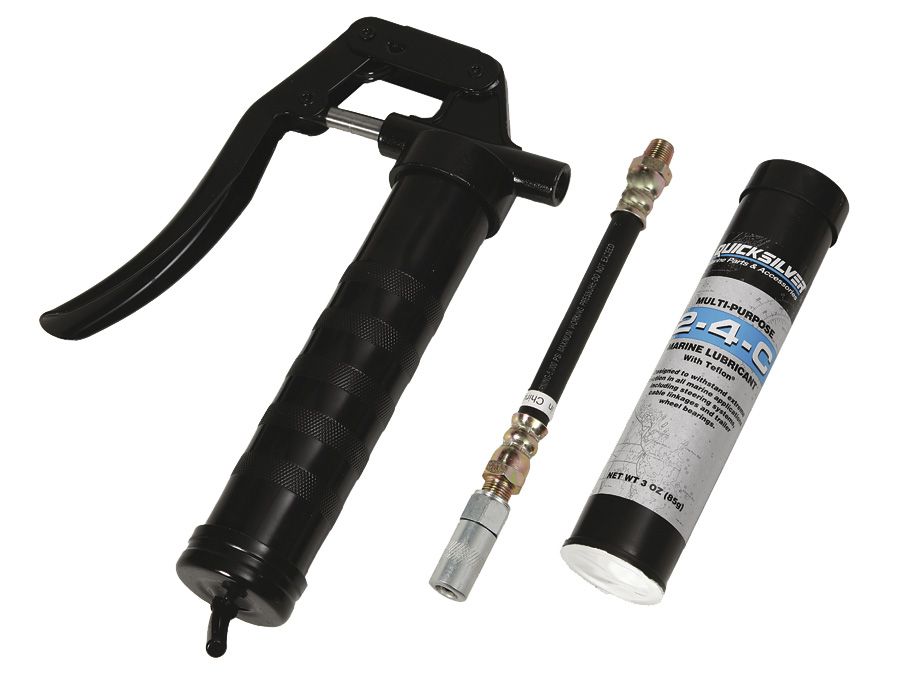 Пластичная смазка QUICKSILVER 2-4-С с тефлоном, комплект: картридж 85 гр.+ пистолет (10267331). Это высококачественная многоцелевая консистентная смазка NLGI 2, которая не распадается при смешивании с водой.