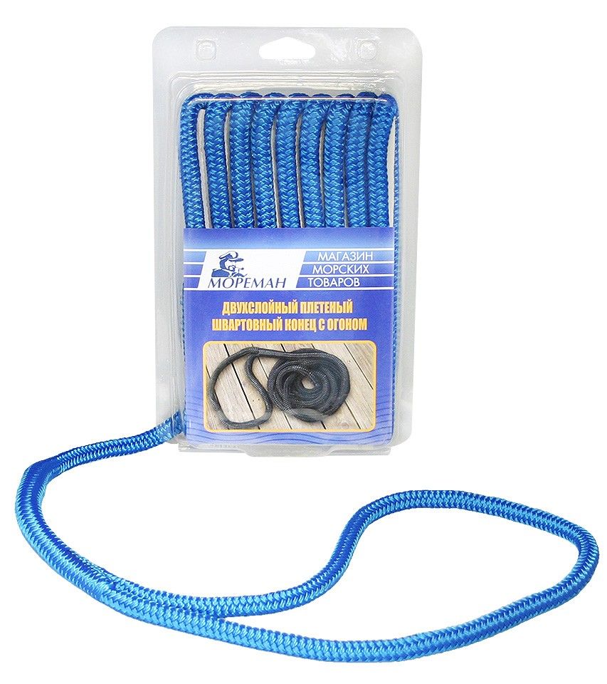 Плетеный швартовный конец "Мореман", 9,5 мм x 3 м, синий (10255143). Новинка! Готовый плетеный швартовный конец "Мореман". Имеет заделанный фабричным способом огон. Изготовлен из качественного нейлона. Различные цвета, длины и диаметры.