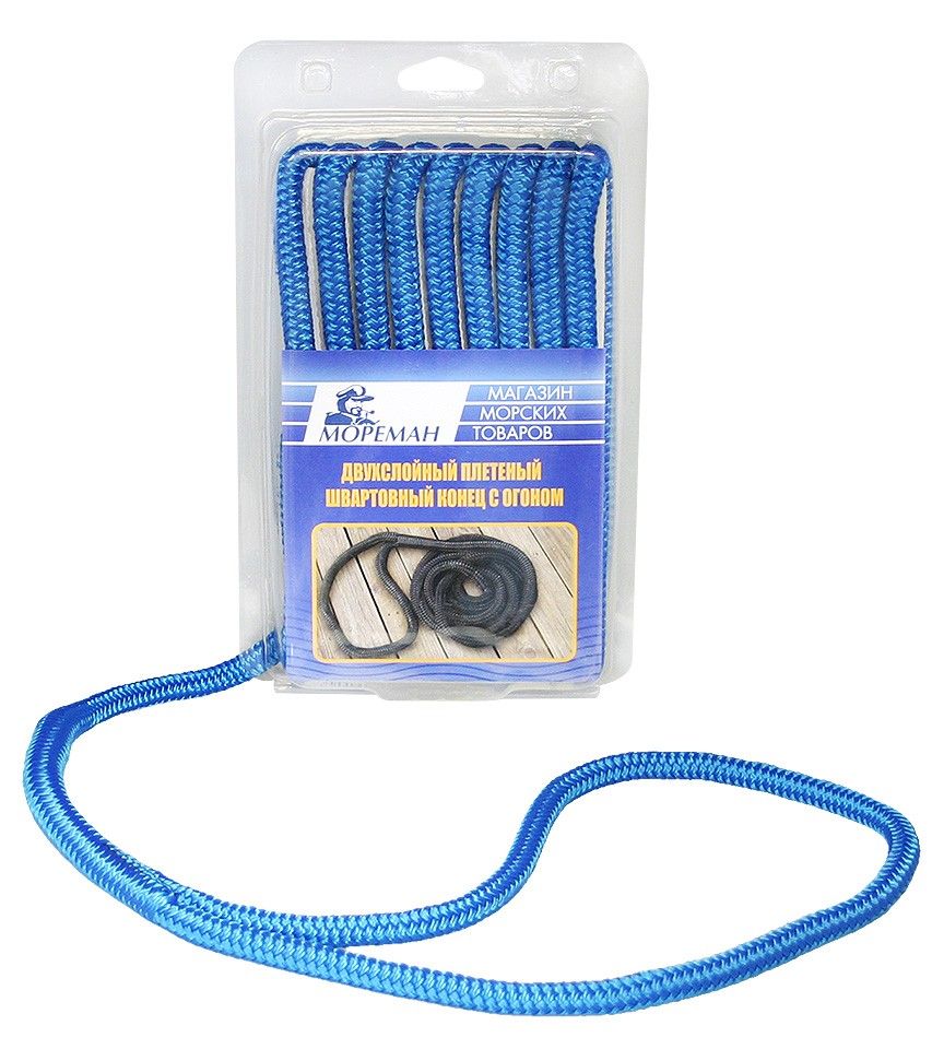 Плетеный швартовный конец "Мореман", 9,5 мм x 4,5 м, синий (10255147). Новинка! Готовый плетеный швартовный конец "Мореман". Имеет заделанный фабричным способом огон. Изготовлен из качественного нейлона. Различные цвета, длины и диаметры.