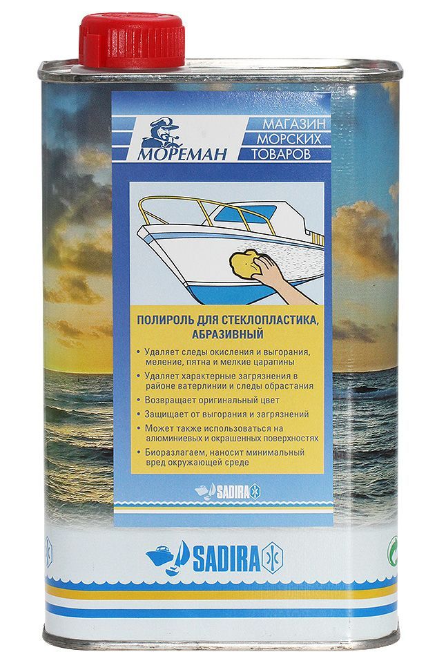 Полироль, абразивный, 1000 мл (10258228). Удаляет следы сильного окисления и выгорания, меление, пятна и мелкие царапины. Удаляет характерные загрязнения в районе ватерлинии и следы обрастания. Возвращает оригинальный цвет. Защищает от выгорания и загрязнений. Может также использоваться на алюминиевых и окрашенных поверхностях.Биоразлагаем, наносит минимальный вред окружающей среде.Для получения максимального эффекта и лучшей защиты корпуса после применения этого полироля рекомендуется дополнительно обработать поверхность косметическим полиролем (10258216, 10258217). Гелькоут с сильной желтизной, серым налетом и пятнами ржавчины предварительно следует обработать очистителем корпуса (10258212, 10258213).Объем: 500, 1000 мл.Производитель: "Sadira", Испания (специально для компании "Мореман").