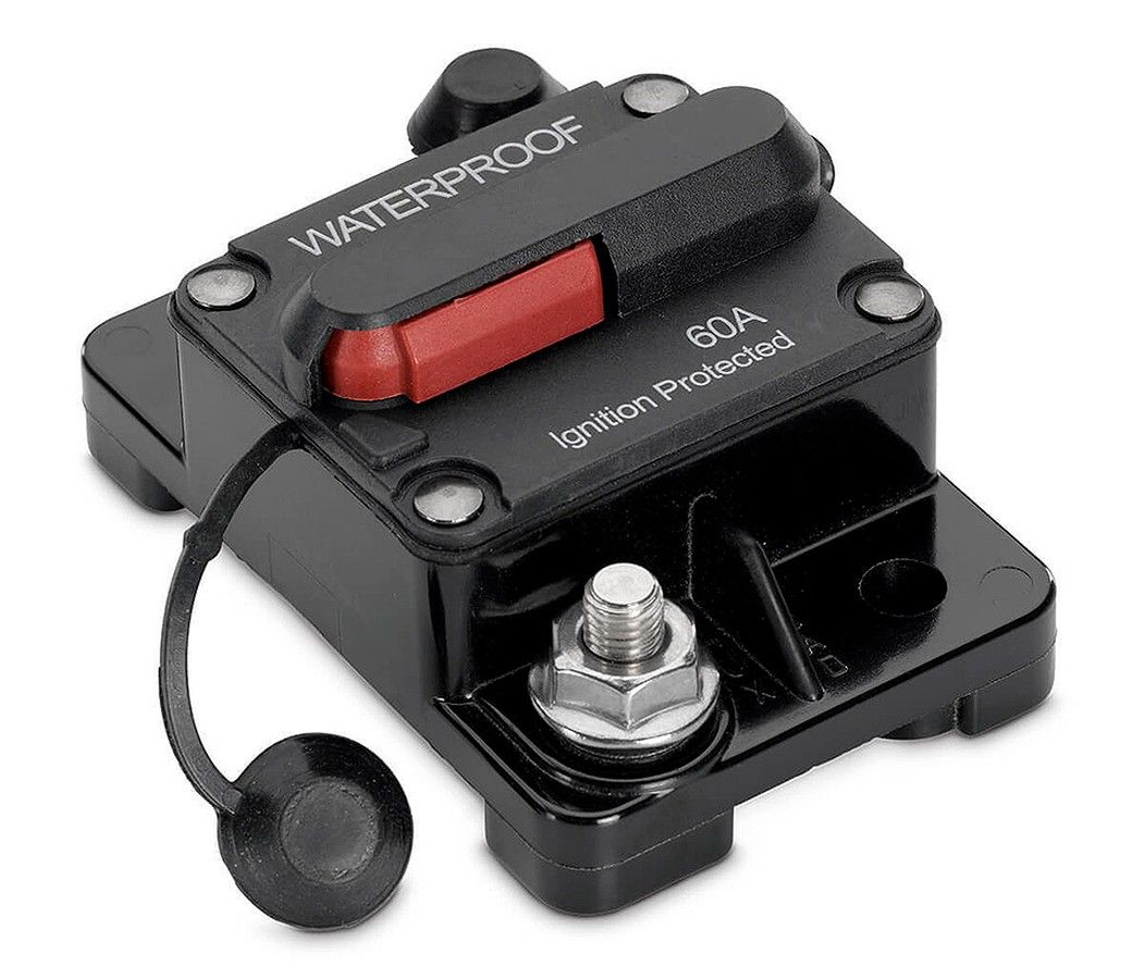 Предохранитель автоматический влагозащищенный, 60А (10267359). Автоматические предохранители во влагозащищенном исполнении. После срабатывания приводятся в рабочее положение путем нажатия на кнопку. Могут использоваться для принудительного обесточивания сети вручную. Не рекомендованы для использования с нагрузкой, имеющей большой пусковой ток (например, с якорными лебедками).Допустиммое напряжение: 48 В.Номинальный ток: 20-140 А.Размер: 57х48,2х44,2 мм.Страна-производитель: Китай.