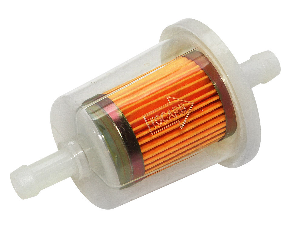 Прямоточный топливный фильтр. Прозрачная колба позволяет контролировать степень загрязнения. Не задерживает масло. Патрубки под шланги 3/8 или 1/4-5/16 дюйма (9,5 и 6-8 мм).