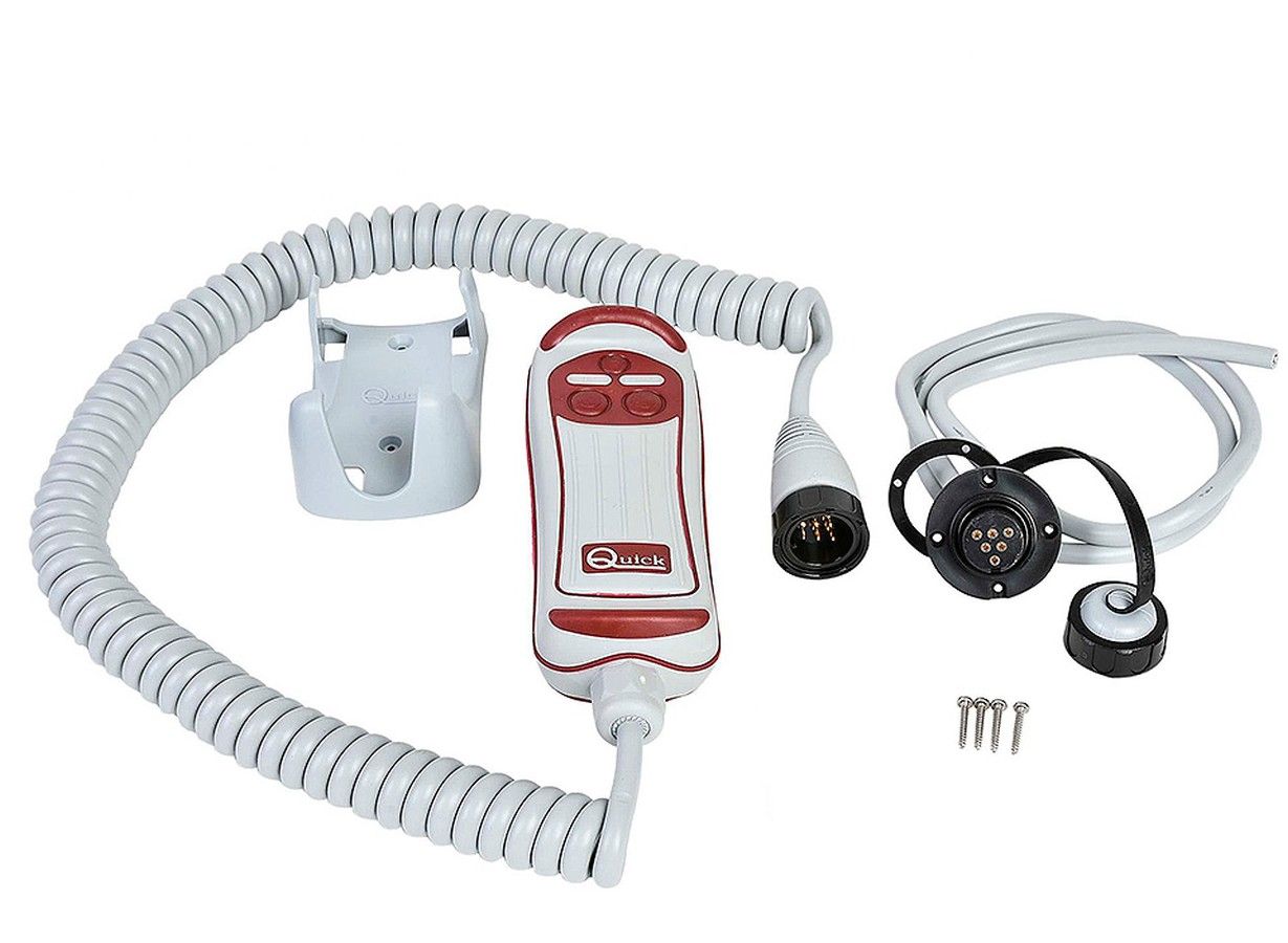 Пульт управления HRC, 2 кнопки. (10236199). Универсальный пульт управления в защищенном от воды корпусе (IP67) на витом шнуре. Позволяет управлять якорными лебедками, подруливающими устройствами и т.п. электрическими устройствами (Внимание! Мощные потребители электроэнергии должны быть подключены через пусковые реле/соленоиды.) В комплекте – водонепроницаемая розетка и пластиковый держатель. Часть моделей снабжена экономичным светодиодным фонариком, включаемым отдельной кнопкой.Количество кнопок коммутации: 2-8.Напряжение питания: 6-30В.Максимальный ток коммутации (при напряжении 30 В): 5 А.Максимальный потребляемый ток (только модели с фонариком): 100 мА.Длина шнура: 4 м.Производитель: "Quick", Италия.