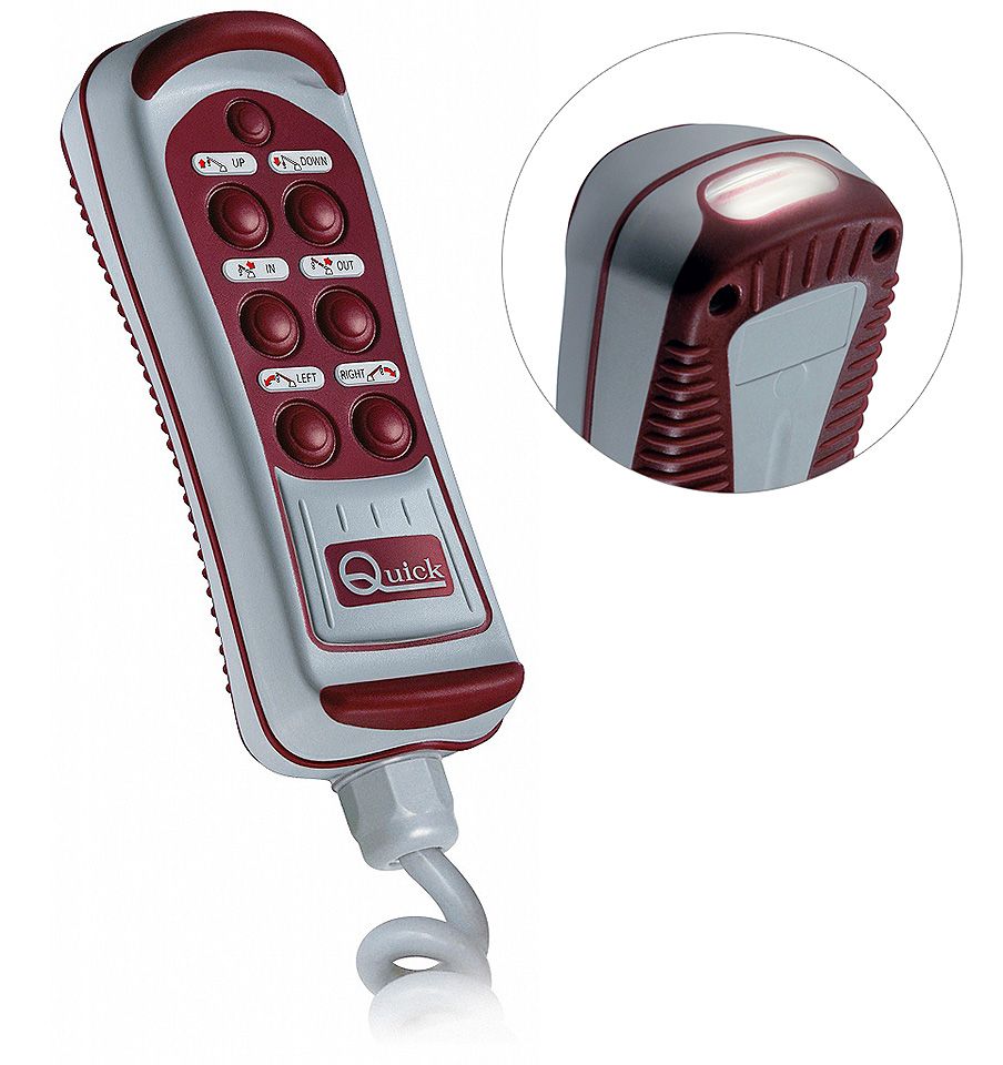 Пульт управления HRC, 6 кнопок, фонарик. (10236204). Универсальный пульт управления в защищенном от воды корпусе (IP67) на витом шнуре. Позволяет управлять якорными лебедками, подруливающими устройствами и т.п. электрическими устройствами (Внимание! Мощные потребители электроэнергии должны быть подключены через пусковые реле/соленоиды.) В комплекте – водонепроницаемая розетка и пластиковый держатель. Часть моделей снабжена экономичным светодиодным фонариком, включаемым отдельной кнопкой.Количество кнопок коммутации: 2-8.Напряжение питания: 6-30В.Максимальный ток коммутации (при напряжении 30 В): 5 А.Максимальный потребляемый ток (только модели с фонариком): 100 мА.Длина шнура: 4 м.Производитель: "Quick", Италия.