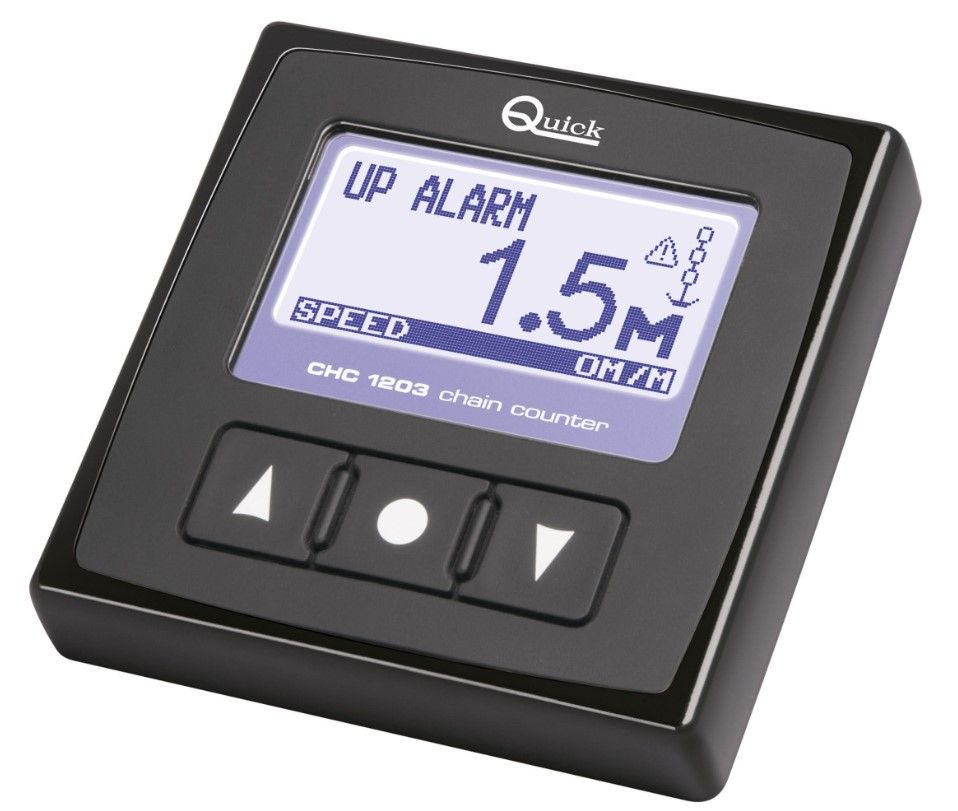 Пульт управления лебедкой со счетчиком цепи (10236208). Пульт управления с жидкокристаллическим экраном, отображающим количество вытравленной/подобранной цепи, а также скорость движения цепи (дополнительно отображаются текущие дата и время, напряжение бортовой сети). Позволяет управлять якорной лебедкой с помощью двух кнопок (вверх/вниз) в ручном режиме, а также программировать спуск якоря на заданную глубину в автоматическом режиме. Подсчитывает количество оборотов барабана якорной лебедки с помощью магнитного датчика, автоматически преобразуя полученные данные в метры (подстраивается под любые типы лебедок и барабанов). Имеет функцию сигнализации завершения подъема якоря (момент срабатывания сигнализации настраивается индивидуально). Все якорные лебедки "Quick" имеют датчик в стандартной комплектации. Если ваша лебедка не имеет датчика, вы можете самостоятельно оборудовать его таковым с помощью входящей в комплект счетчика цепи оснастки.) Счетчик может быть установлен на любую плоскую поверхность с помощью двух винтов, либо может быть врезан в нее заподлицо (дополнительно потребуется комплект крепления 10236210). Корпус защищен от воды по классу IP67. Ж/К экран имеет 8-уровневую подсветку и функцию автоматической корректировки контрастности в зависимости от температуры окружающей среды.Внимание, подключение к лебедке должно производиться только через реле нагрузки (соленоид)!Внимание! Данный счетчик корректно работает только с лебедками, имеющими стандартные цепные звездочки! Лебедки, наматывающие цепь/трос на собственный барабан (типа "PT" от Quick), с данным счетчиком несовместимы!Напряжение питания: 12/24 В.Потребляемый ток: 50 мА.Датчик (магнит) - в комплекте.Производитель: "Quick", Италия.