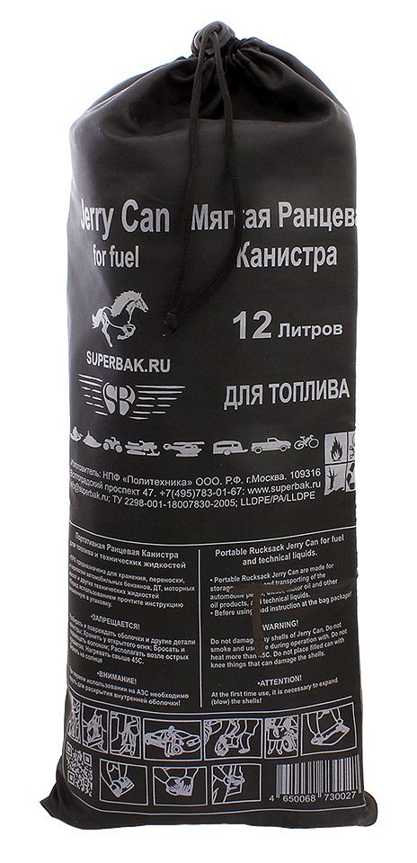 Компактная и легкая мягкая канистра для хранения и переноски топлива или воды. Состоит из внутренней герметичной полимерной емкости, теплоизоляционного материала марки Пенофол и внешней силовой тканевой оболочки. Имеет стропы для переноски за спиной.