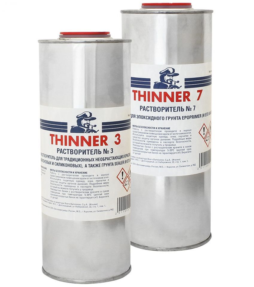 Растворитель № 3 (10265852). Растворители для необрастающих красок и грунтов. Произведены в России специально для компании "Мореман" по рецептуре Boero Bartolomeo S.p.A. (Италия). Назначение:растворитель № 3 - применяется для разбавления необрастающих красок ALU Premium Hard, ALU Classic Hard, а также любых других традиционных необрастающих красок (кроме тефлоновых и силиконовых), а также грунта Sealer (и его аналогов);растворитель № 7 - применяется для разбавления двухкомпонентного эпоксидного грунта Epoprimer (и его аналогов). Указания по применению – см. в инструкциях на соответствующие лакокрасочные материалы!Объем: 1 л.