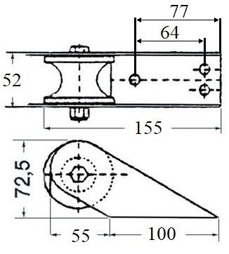 Роульс, 155 мм (10245095). Роульс из нержавеющей стали. Пригоден для якорей малого веса. Длина: 155 мм.Ширина: 52 мм.Диаметр ролика: 62 мм.Диаметр отверстий под крепеж: 6 мм.Толщина металла: 2 мм.Вес: 0,4 кг. Производитель: Китай