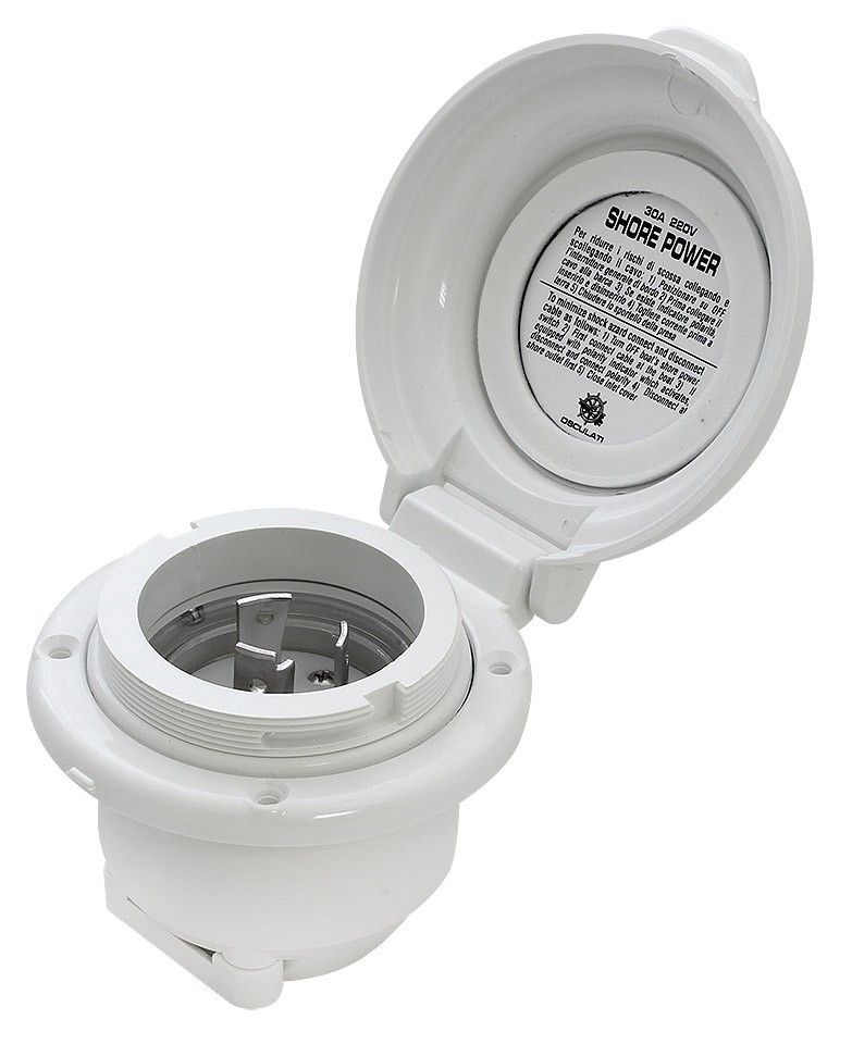 Розетка влагозащищенная, 30 А, пластик, IPX7 (10265415). Розетка с крышкой на защелке и резиновым уплотнителем. Три контакта (посеребренная латунь). Корпус и крышка из УФ-стойкого пластика Luran.