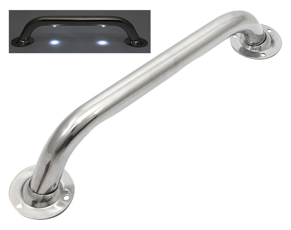 Рукоятка (поручень), 2 светодиода, 300X25 мм (10263152). Рукоятки (поручни) из нержавеющей стали. Имеют встроенную светодиодную подсветку, облегчающую использование поручней в ночное время, а также делающую судно более видимым на стоянке в темное время суток (не используйте подсветку во время движения судна, чтобы не ухудшать распознаваемость ваших навигационных отличительных огней!).