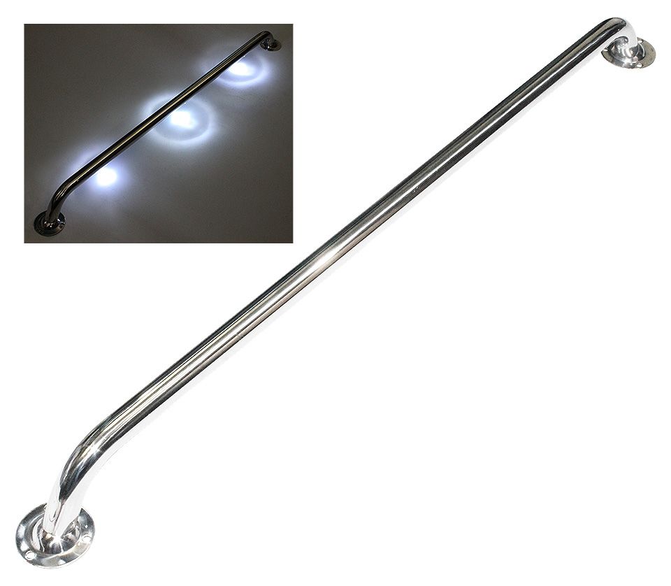 Рукоятка (поручень), 3 светодиода, 22х800 мм (10263146). Рукоятки (поручни) из нержавеющей стали. Имеют встроенную светодиодную подсветку, облегчающую использование поручней в ночное время, а также делающую судно более видимым на стоянке в темное время суток (не используйте подсветку во время движения судна, чтобы не ухудшать распознаваемость ваших навигационных отличительных огней!).
