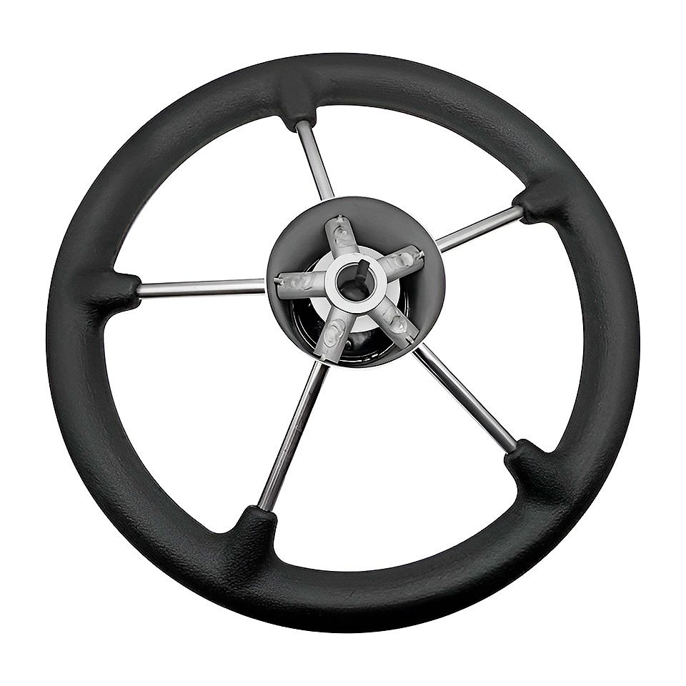 Рулевое колесо, 280 мм (10269788). Рулевое колесо из нержавеющей стали и ободом из вспененного полиуретана.Диаметр: 280 мм.Страна-производитель: Китай.