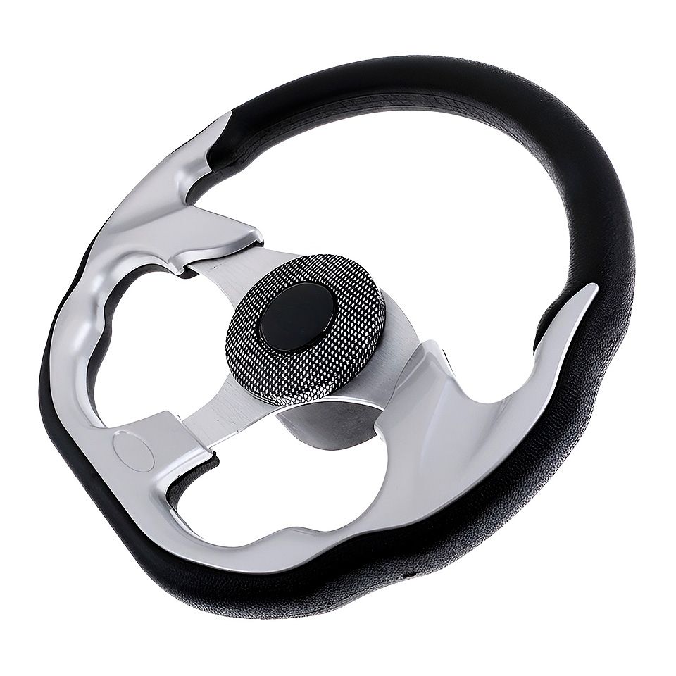 Рулевое колесо, 320 мм, черное с серым (10269792). Рулевое колесо с ободом, покрытым вспененным полиуретаном.Диаметр: 320 мм.Страна-производитель: Китай.