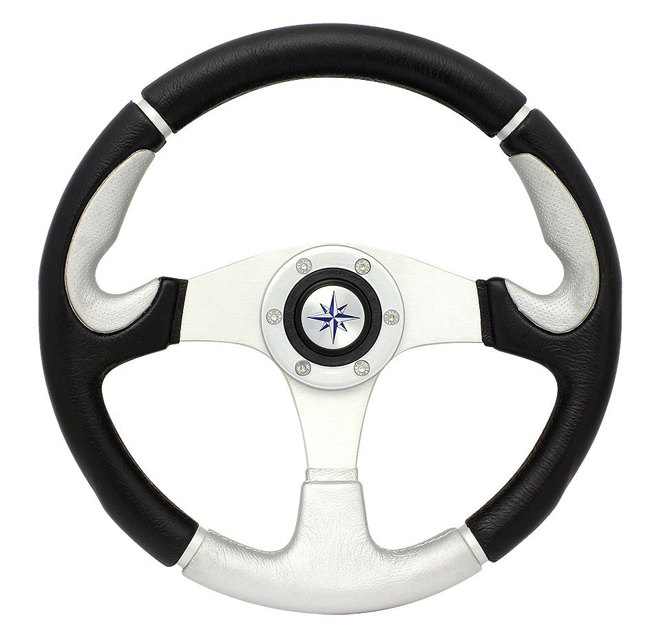 Рулевое колесо "Flash", черные спицы, серебристо-черный обод. (10016472). Рулевое колесо со ступицей из легкого сплава и утолщенным ободом диаметром 355 мм. Ступица круглой формы имеет посадочный конус стандартного размера.Вес - 1,310кг.Цвет: черный, серебристый.Производитель: "SeaStarSolutions" (ранее "Teleflex"), США.
