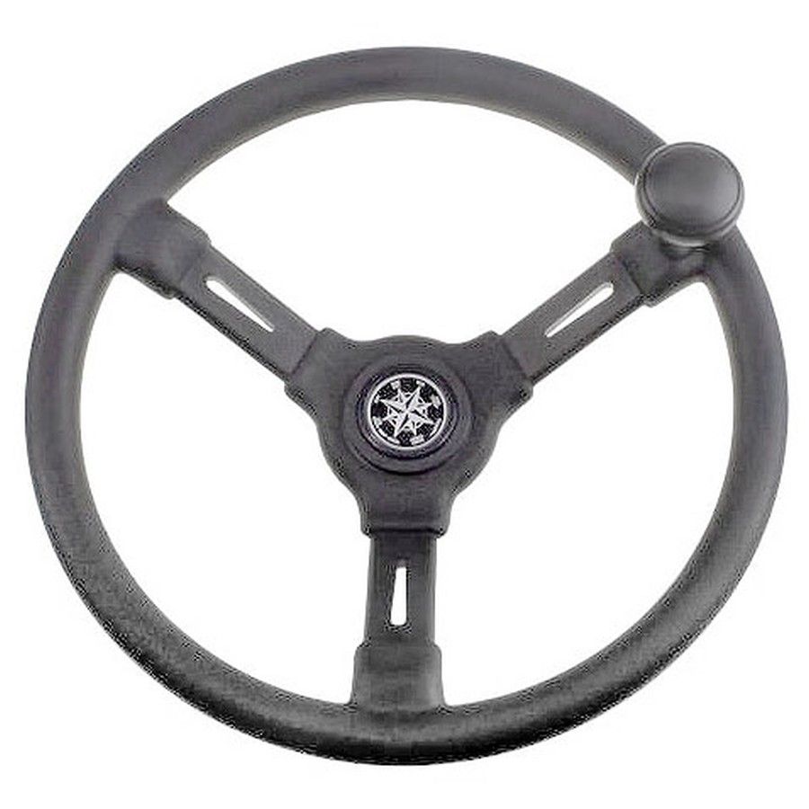 Рулевое колесо "Riviera" с рукояткой (10254952). Пластиковое рулевое колесо с ободом диаметром 350 мм. Грибовидная рукоятка для облегчения проворачивания. Ступица круглой формы с конусом cтандартного размера.Вес - 0,850кг.