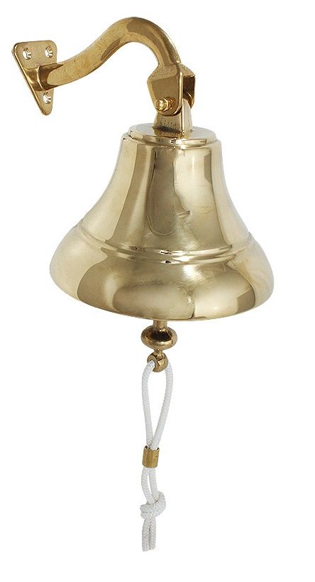 Рында, 150 мм, полированная латунь (10262340). Изготовлена из высококачественной латуни. Доступна в двух вариантах - полированном или хромированном. Высочайшее качество (100% сделано в Италии!). Поставляется вместе с кронштейном.