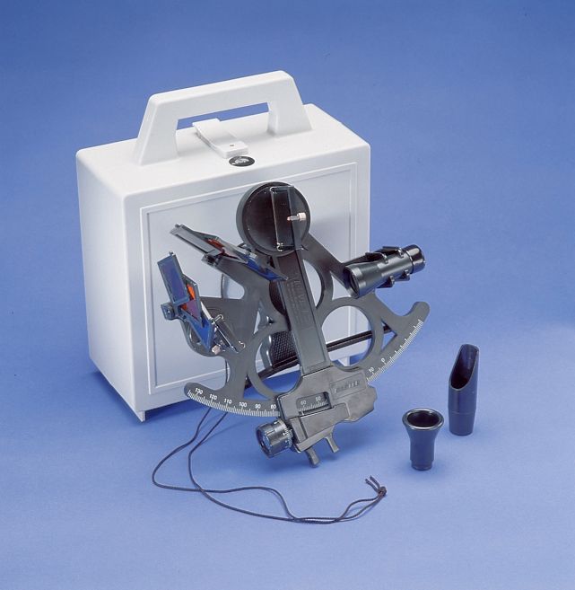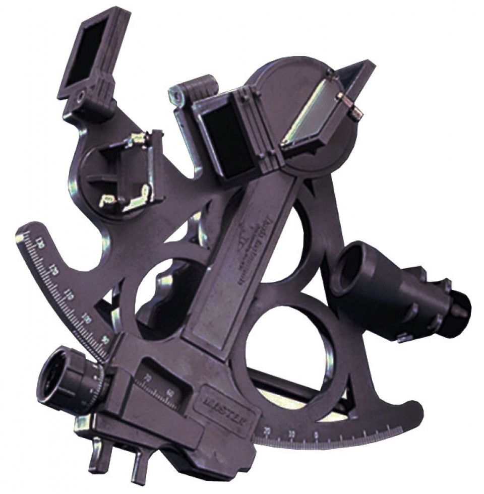 Секстан (секстант) "Mark 15" (10262561). 18-сантиметровая шкала, градуированная от 120° до 5°. Зеркало размером 50 * 38 мм. Высокоточный регулировочный механизм. Легко читаемые значения на регулировочных рукоятках. Прочная оребренная рама. Большая удобная ручка. Семь больших солнечных шторок позволяют добиться необходимого затенения. Телескопическая труба 3х27 мм с линзами, имеющими антибликовое покрытие + смотровая труба с козырьком. Шейный ремень и кофр для хранения.