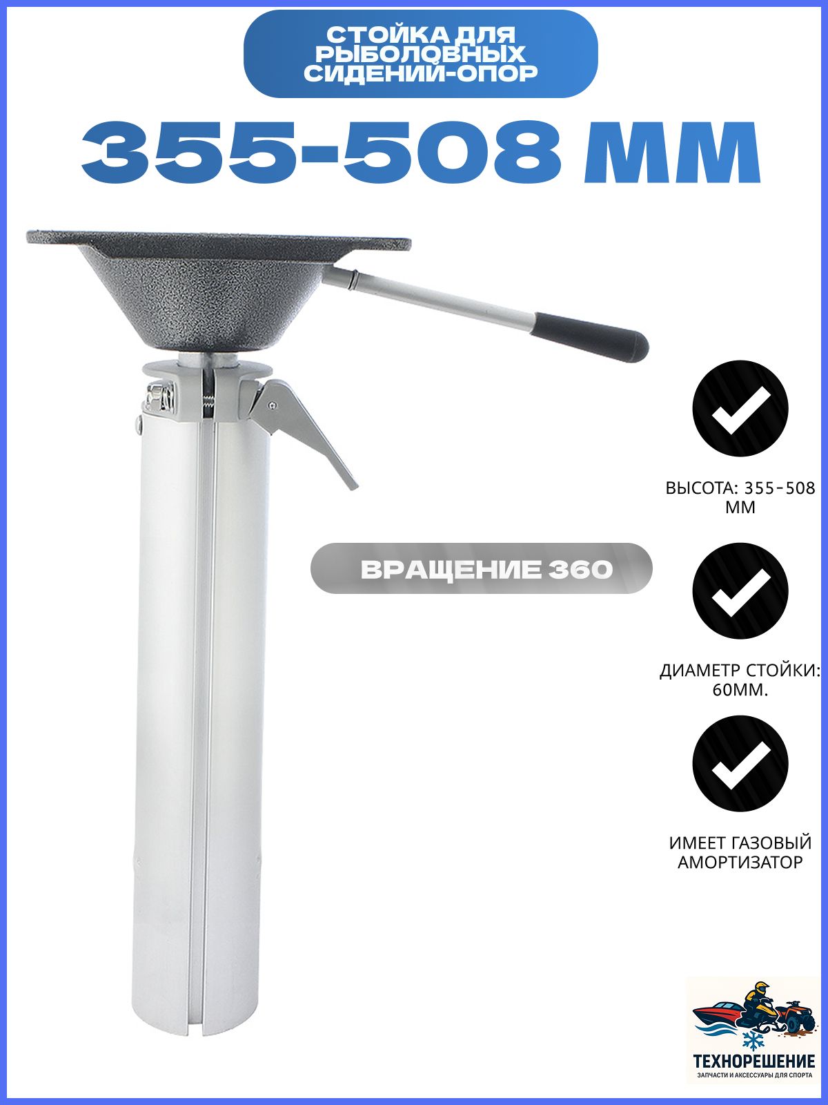 - Стойка для рыболовных сидений-опор, 355-508 мм. Регулируемые по высоте съемные стойки для рыболовных сидений-опор: Сиденье-опора "Pro casting" (коды товара:10251886, 10251887, 10251888) и Сиденье-опора "Back stop Pro" (коды товара: 10251893 и 10251894) Изготовлены из алюминиевого сплава. Имеют газовые амортизаторы для облегчения регулировки по высоте. Внимание, основания (монтажные гнезда) в стоимость стоек не входят и приобретаются отдельно!