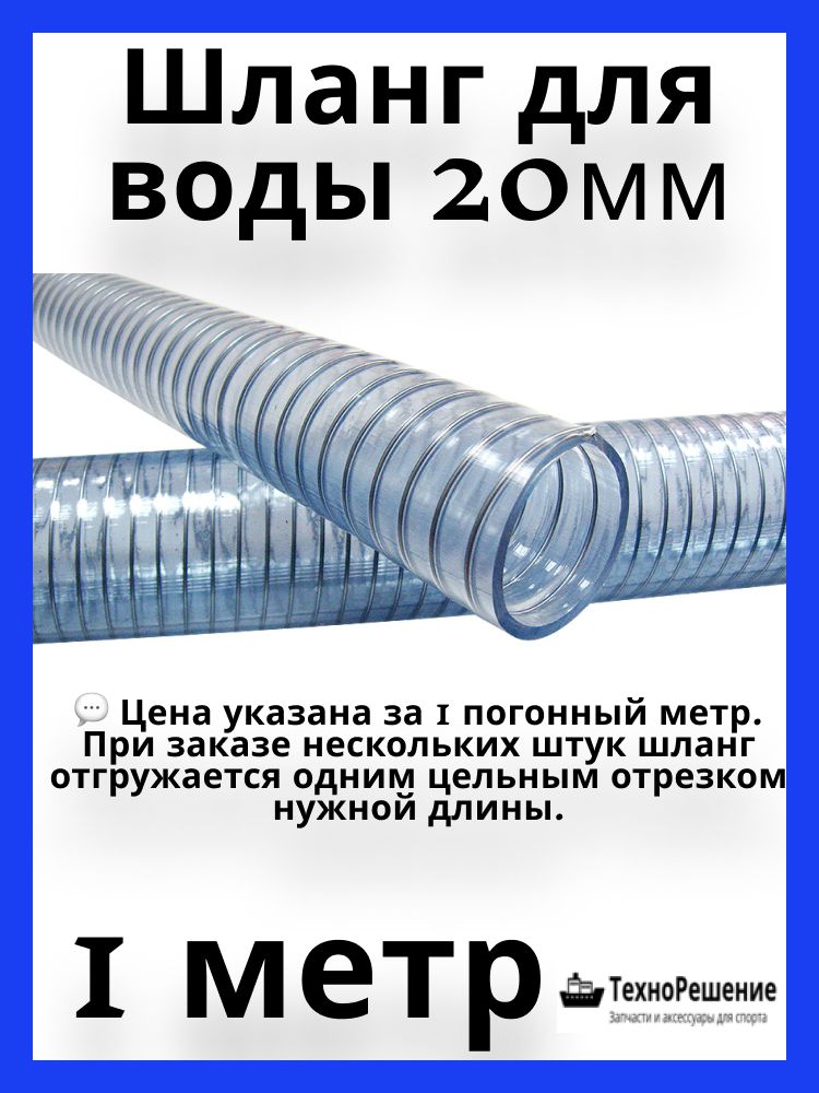 Шланг для воды 20х27 мм. Шланг из пищевого прозрачного ПВХ, армированного стальной спиралью. Не сужают проходного сечения при возникновении разрежения или внешнего давления, благодаря чему могут с успехом использоваться для подключения трюмных помп, помп подачи воды, унитазов и т.п. устройств. Прозрачные стенки позволяют визуально контролировать потоки жидкостей. Шланг чрезвычайно гибок и обладает умеренной эластичностью, благодаря чему может быть состыкован со штуцерами иных диаметров +/- 1-2 мм. Гладкая внутренняя поверхность для минимального сопротивления. Устойчив к ультрафиолетовому излучению и к воздействию большого числа химических веществ. Пригоден для перекачки жидкостей, в том числе и пищевых. Цена указана за 1 погонный метр. Диаметр внутренний: 20 мм. Диаметр внешний: 27 мм. Диапазон температур: от -10 градусовC до +60 градусовC.Рабочее давление: 5 бар. Радиус изгиба: 110 мм. Вакуум: 8.5 м/H2O.Количество метров в бухте: 50. Производитель: Беларусь.