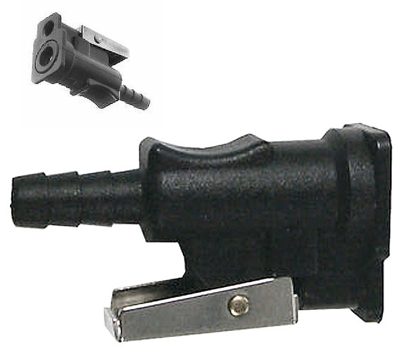 Штуцер топливного шланга для моторов "Mercury". Варианты под двигатель и под топливный бак. Под шланг 3/8 дюйма.Крепление: зажим.Материал: пластик. Производитель: "Sierra", США.