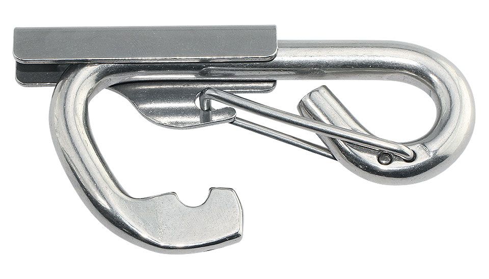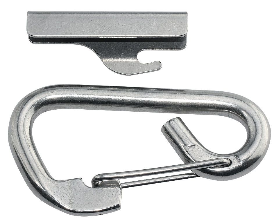 Швартовный карабин с разъемным кронштейном (10258987). Карабин для швартовки. Крепится в открытом положении в кронштейне (входит в комплект поставки), установленном на древке багра. Закрывается при выдергивании кронштейна (кронштейн остается на багре).Облегчает процесс швартовки к буям, палам и прочим труднодоступным швартовным устройствам. Изготовлен из нержвеющего прутка калибром 10 мм.Страна-производитель: Китай.