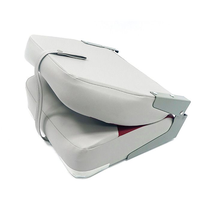 Мягкое сиденье со складной спинкой. Обивка из винила, устойчивого к воздействию влаги и ультрафиолета и не впитывающего жидкостей.