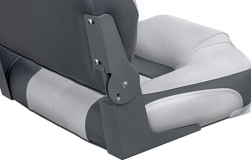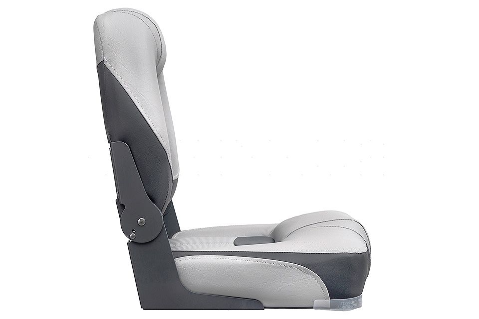 Мягкое сиденье с высокой складной спинкой. Обивка из винила, устойчивого к воздействию влаги и ультрафиолета и не впитывающего жидкостей. Размеры (ширина, глубина, высота): 483*470*584 мм. Цвета: серый с темно-серым и красным, серый с темно-серым и синим, серый с темно-серым. Страна-производитель: Китай.