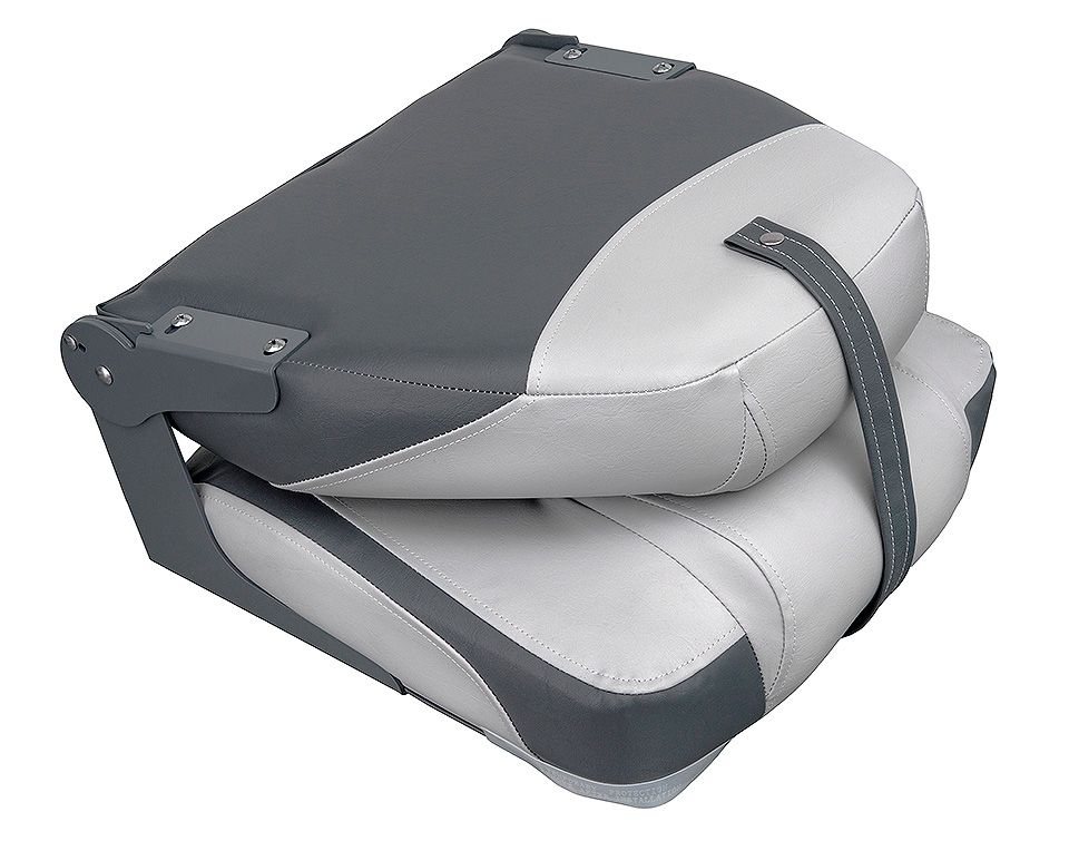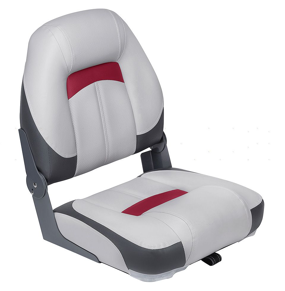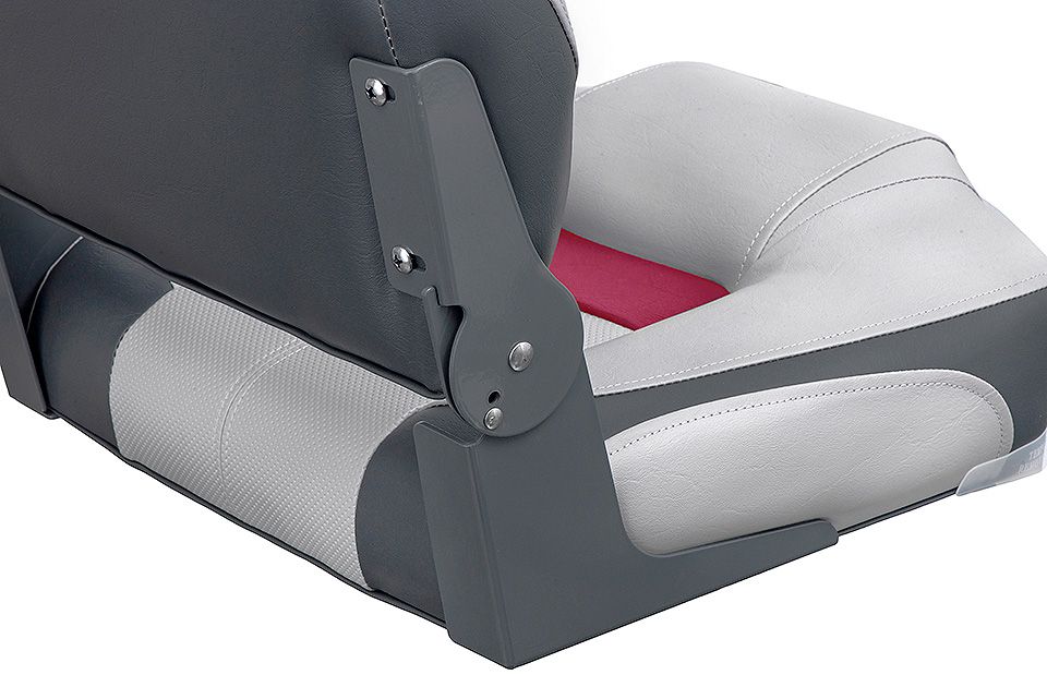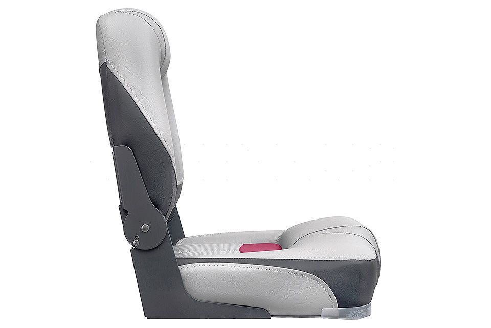 Мягкое сиденье с высокой складной спинкой. Обивка из винила, устойчивого к воздействию влаги и ультрафиолета и не впитывающего жидкостей.